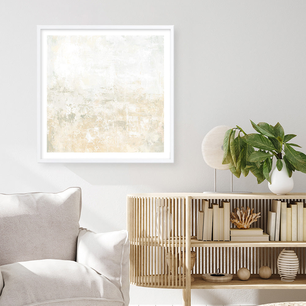 Shop Clay I Light (Square) Art Print by Courtney Prahl and update your wall decor at home easily with this cream abstract artwork from our hand painted prints collection.