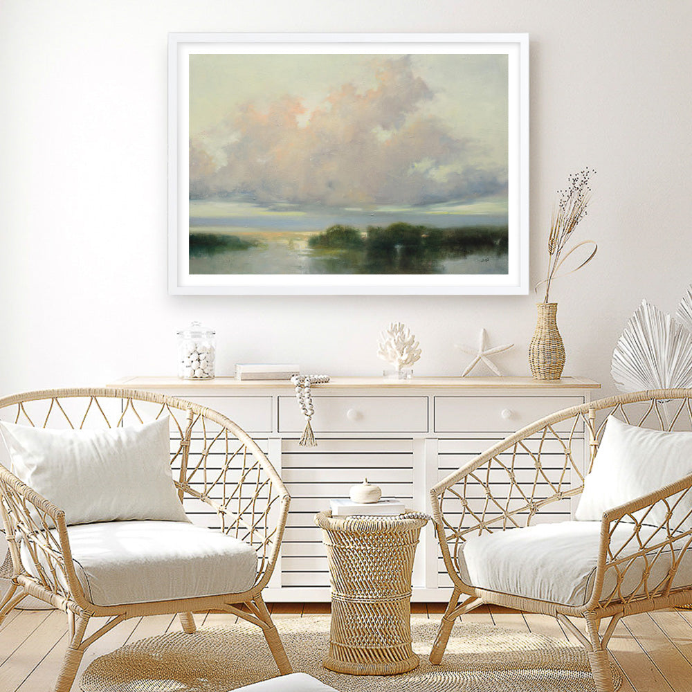 Shop Clouds and CurrentsArt Print by Julia Purintonand update your wall decor at home easily with this beautiful river landscape artwork from our abstract hand painted print collection.