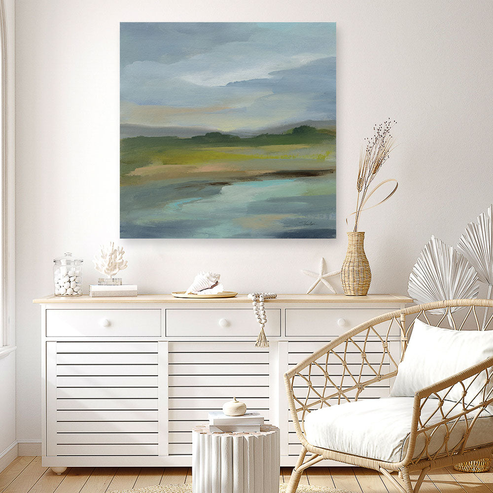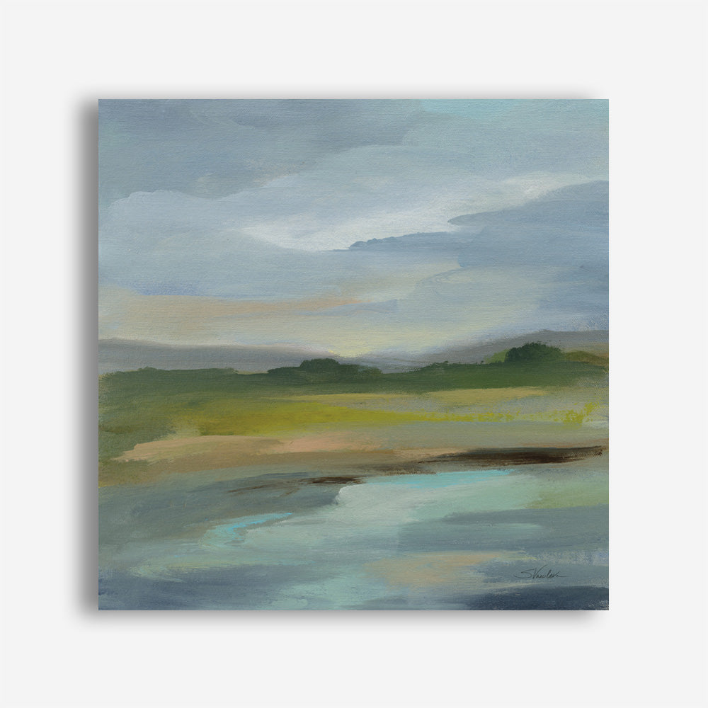 Shop Clouds and Shadows (Square) Canvas Wall Art Print by Silvia Vassileva and update your wall decor at home easily with this blue and green country landscape themed stretched framed artwork from our hand painted canvas print collection.