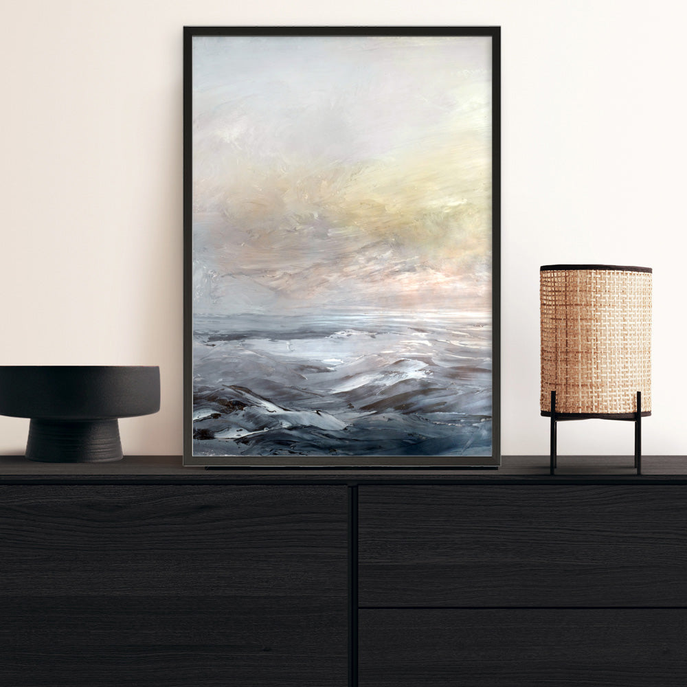 Shop Coast Light I Art Print and update your wall decor at home easily with this coastal themed abstract artwork print from our hand painted print collection by United Kingdom based artist Dan Hobday, now available on The Print Emporium. Dan creates artwork using a mixture of mediums including acrylic paints, inks, digital and also mixed media. All original artworks were designed and hand created by Dan and then digitised, and now available to purchase as reprints on paper or canvas and with framing options available.