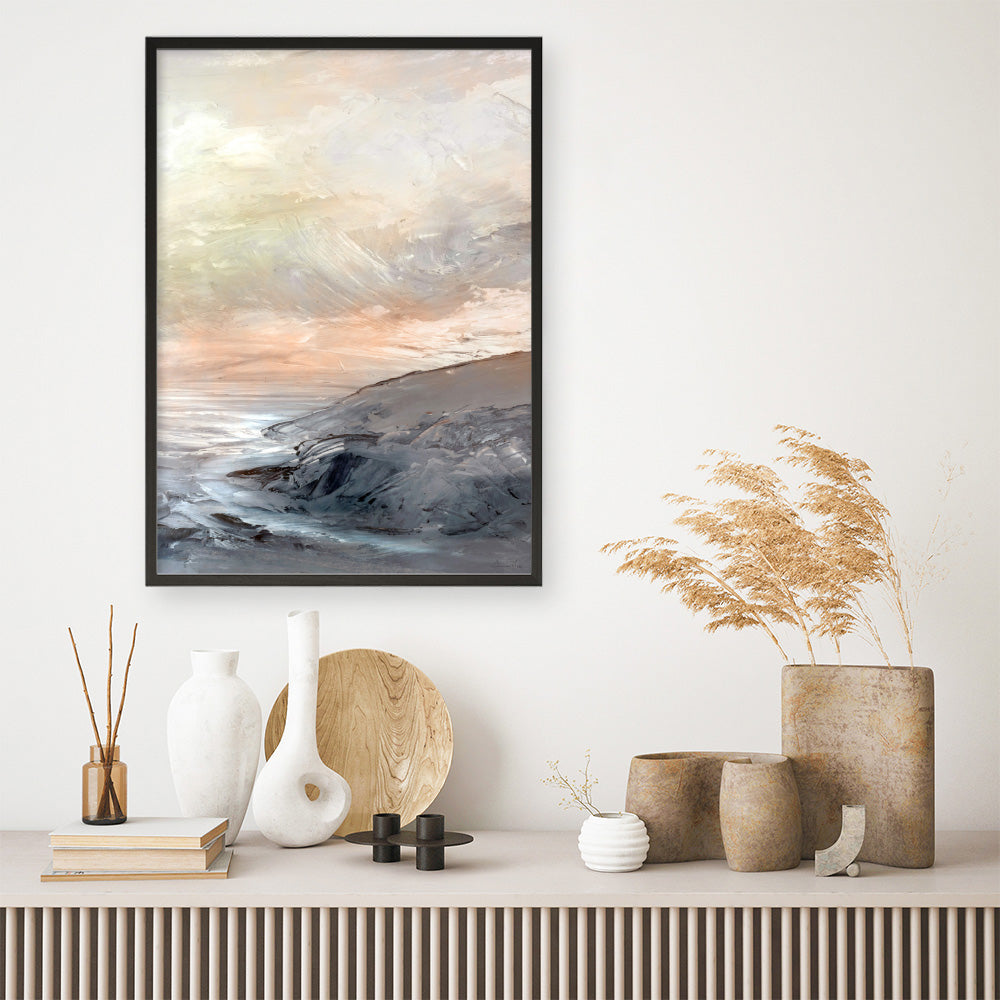 Shop Coast Light II Art Print and update your wall decor at home easily with this coastal themed abstract artwork print from our hand painted print collection by United Kingdom based artist Dan Hobday, now available on The Print Emporium. Dan creates artwork using a mixture of mediums including acrylic paints, inks, digital and also mixed media. All original artworks were designed and hand created by Dan and then digitised, and now available to purchase as reprints on paper or canvas and with framing options available.