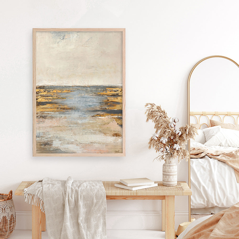 Shop Coastal Art Print by Design Fabrikken and update your wall decor at home easily with this moody sunset coastal view print from our hand painted print collection.