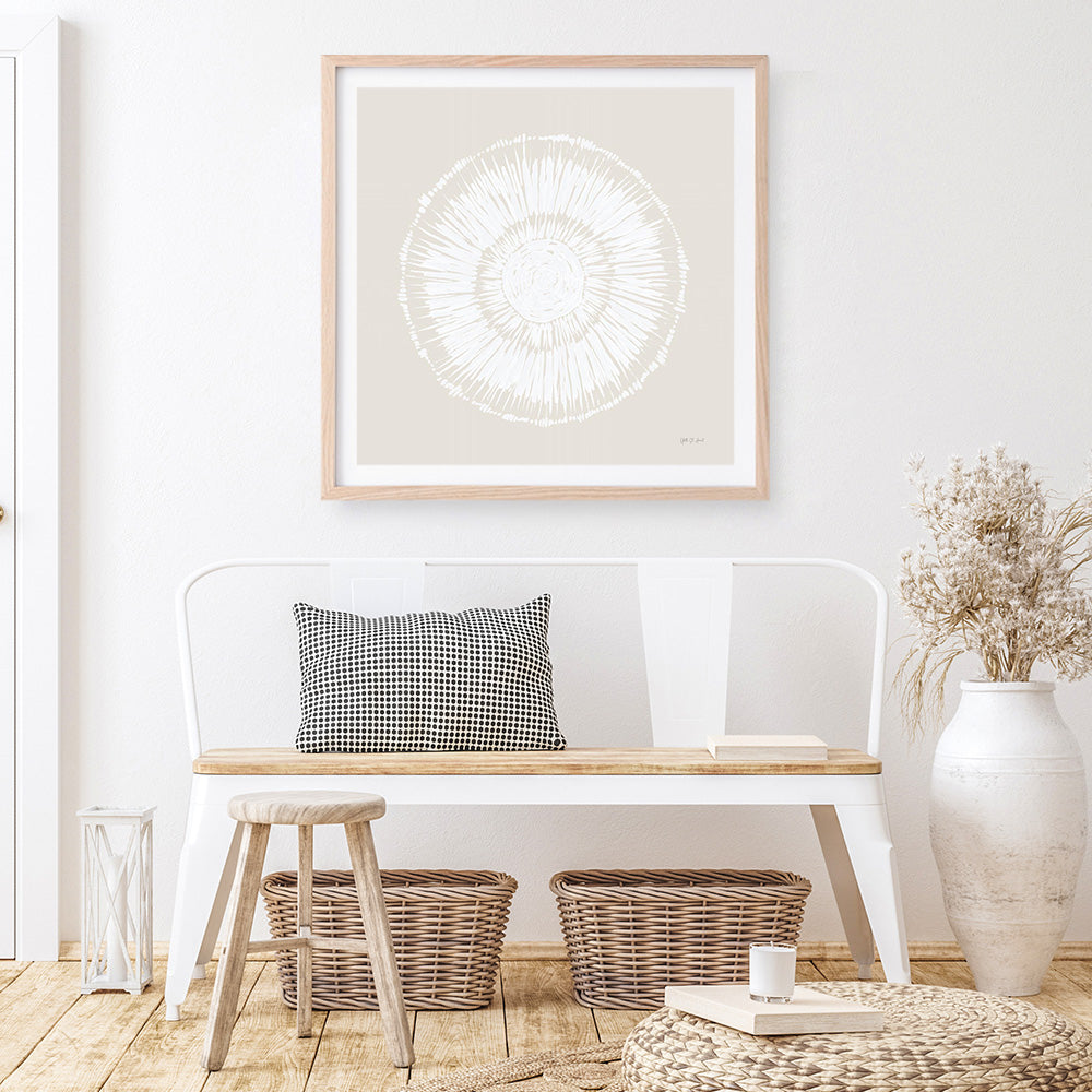Our art prints are custom printed on quality 230gsm white matte paper. We offer a wide range of sizes. Choose from an unframed print or a framed, ready-to-hang option.