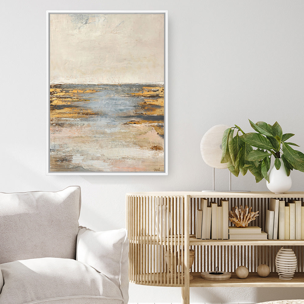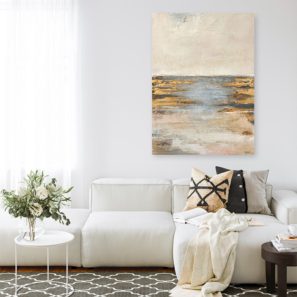 Shop Coastal Canvas Print by Design Fabrikken and update your wall decor at home easily with this moody sunset coastal view artwork from our hand painted canvas print collection.
