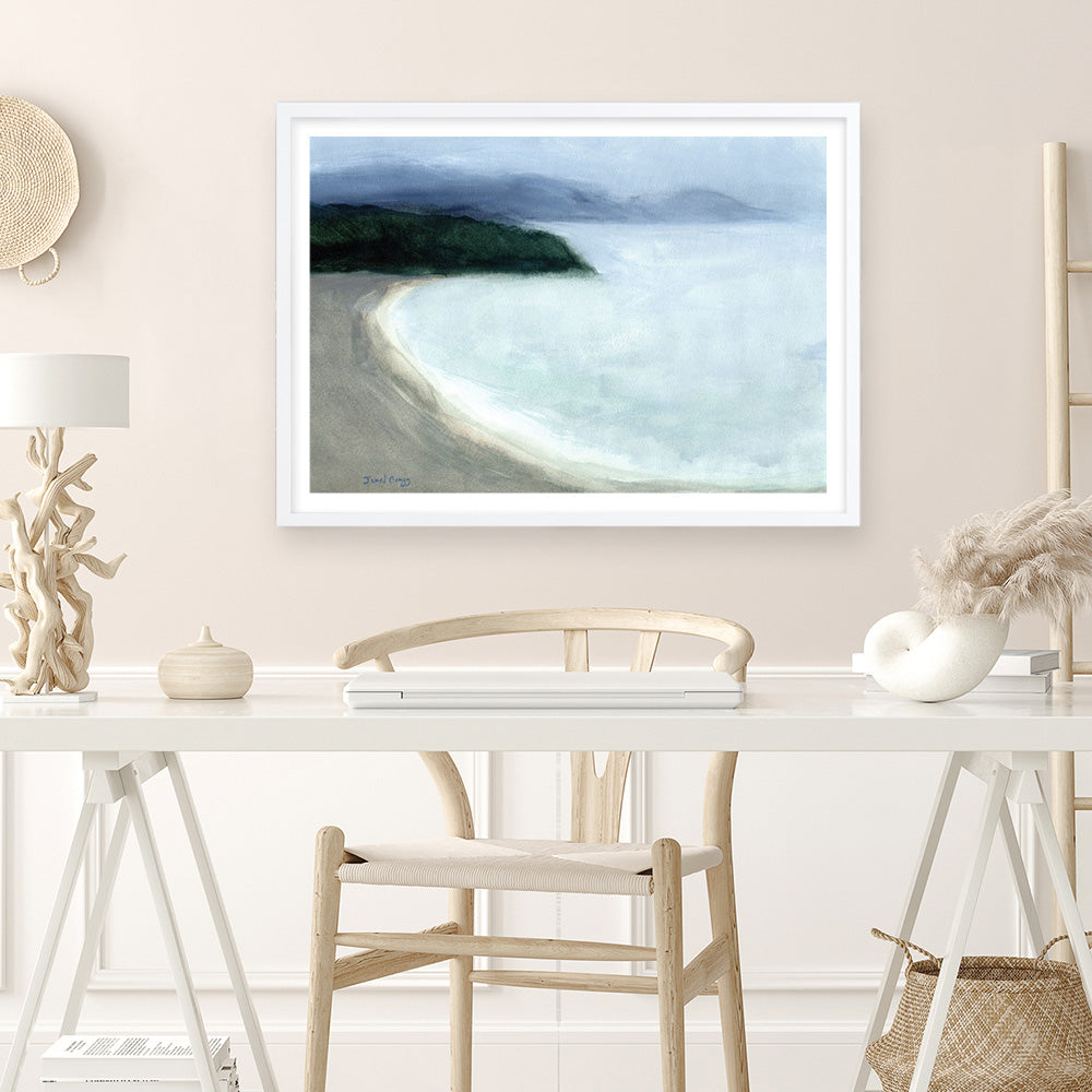 Shop Coastal Dreaming No. 2 Art Print by Janel Bragg and update your wall decor at home easily with this calm beach view print from our hand painted print collection.