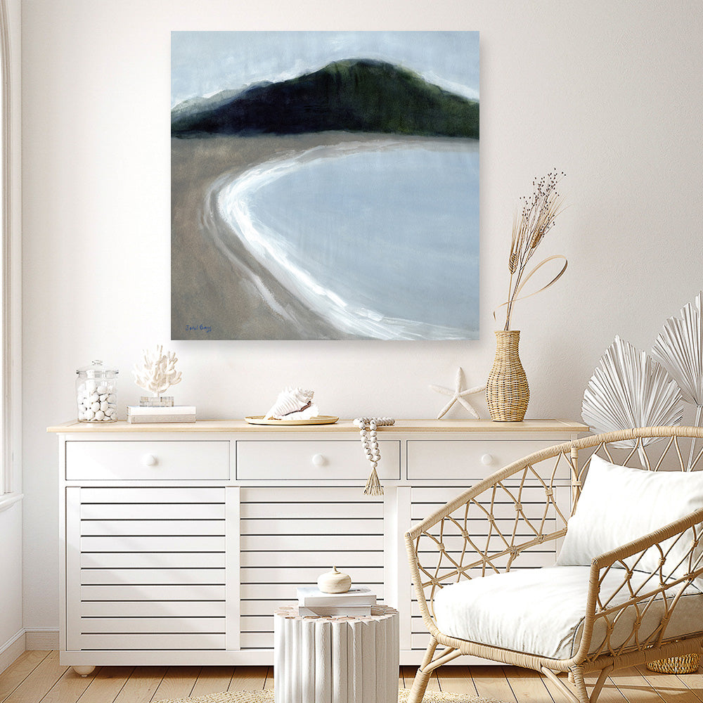 Shop Coastal Dreaming No. 3 (Square) Canvas Print by Janel Bragg and update your wall decor at home easily with this calm coastal view square artwork from our hand painted canvas print collection.