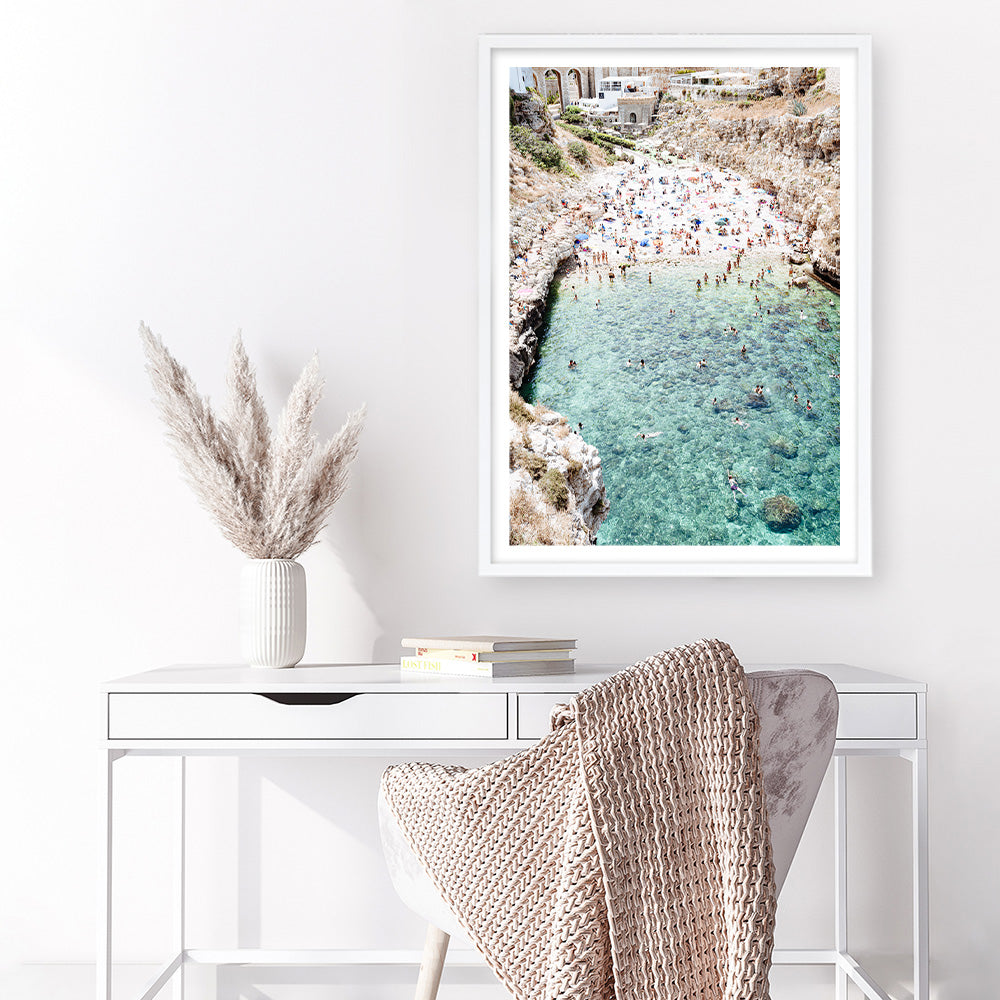Shop Polignano A Mare From Above III Photo Wall Art Print by The Print Emporium and update your wall decor at home easily with this exclusive Italy aerial beach themed artwork print from our collection.