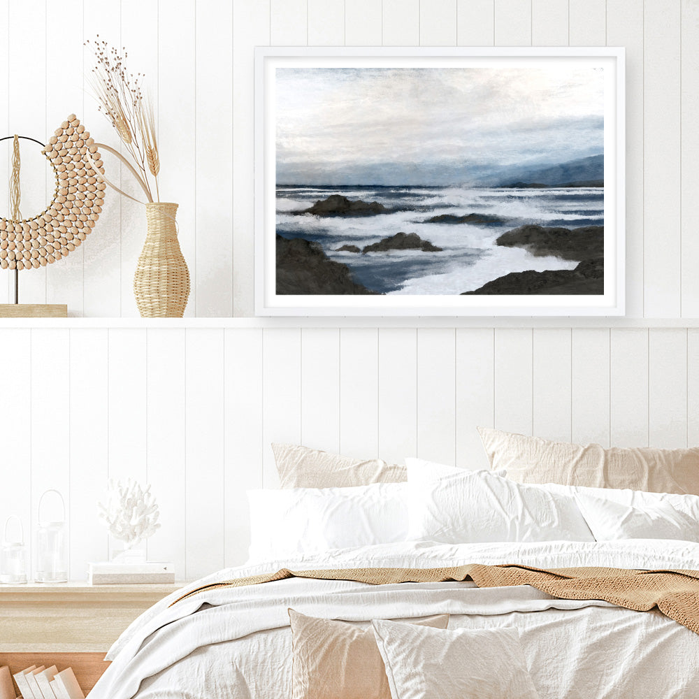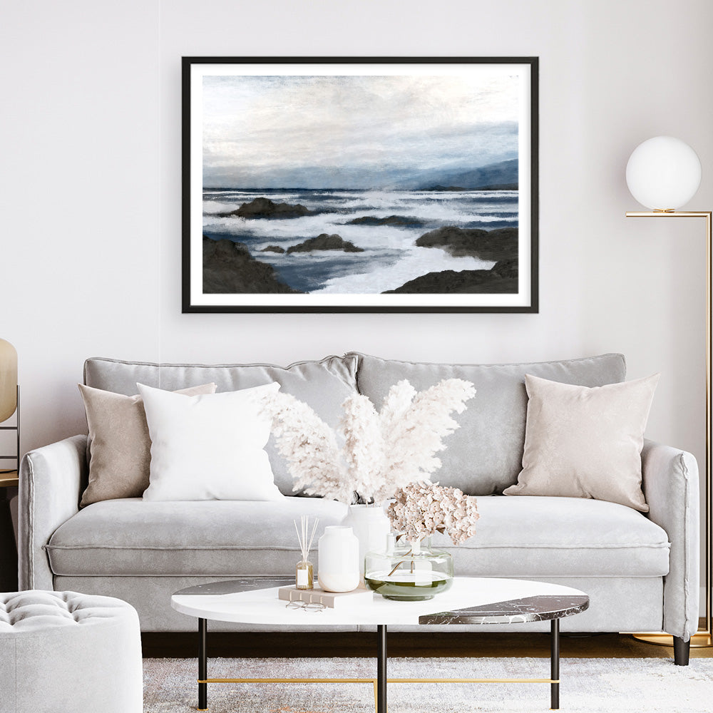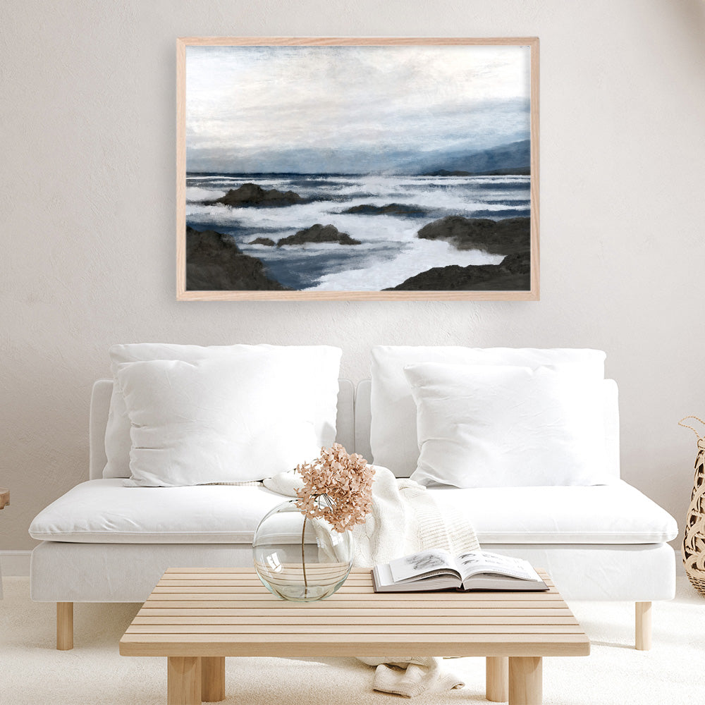 Shop Côte Art Print and update your wall decor at home easily with this coastal themed abstract artwork print from our hand painted print collection by United Kingdom based artist Dan Hobday, now available on The Print Emporium. Dan creates artwork using a mixture of mediums including acrylic paints, inks, digital and also mixed media. All original artworks were designed and hand created by Dan and then digitised, and now available to purchase as reprints on paper or canvas and with framing options available.