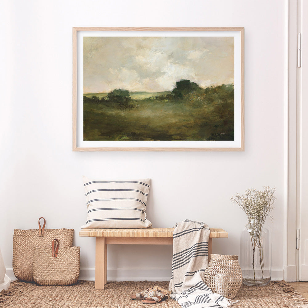 Shop Country View Art Print by Julia Purinton and update your wall decor at home easily with this green meadow artwork from our abstract hand painted print collection.