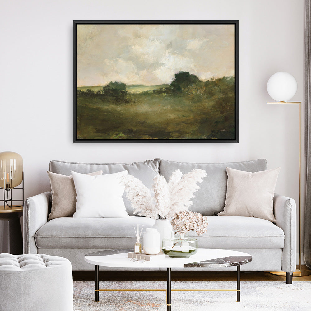 Shop Country View Canvas Print by Julia Purinton and update your wall decor at home easily with this green meadow artwork from our abstract hand painted print collection.