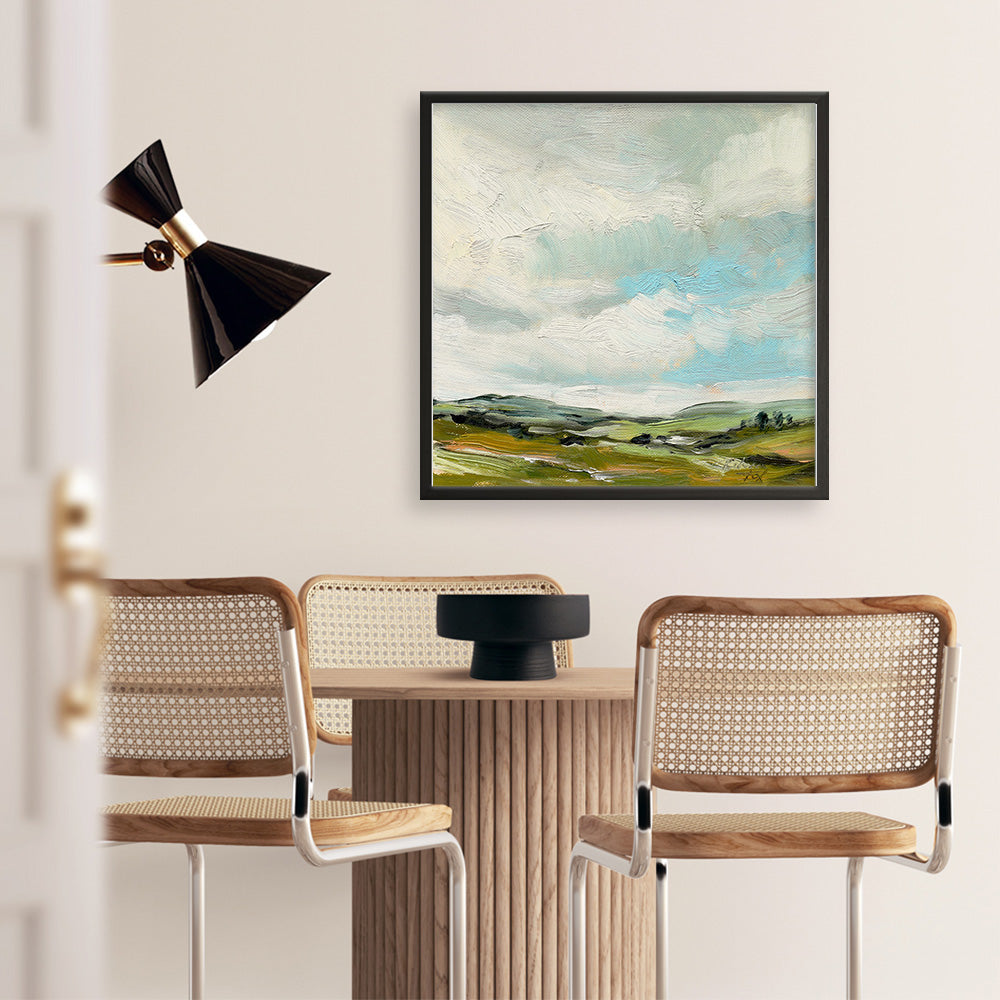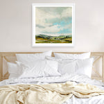 Shop Countryside (Square) Art Print by Rebecca Fox and update your wall decor at home easily with this calm and beautiful square artwork of a field from our hand painted print collection.