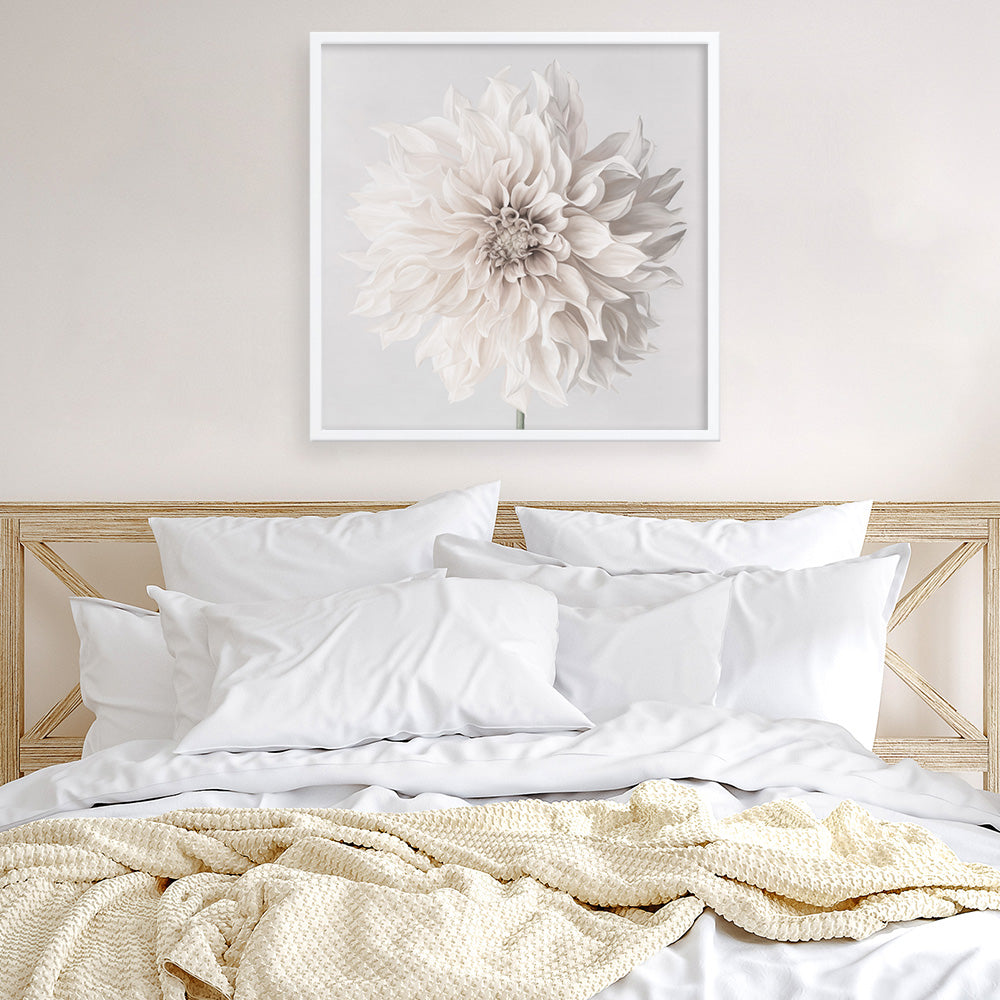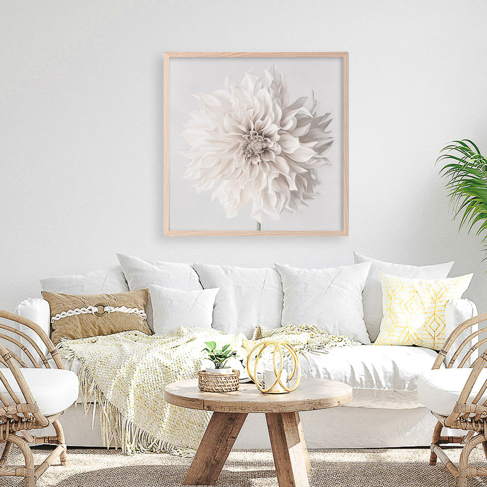 Shop Cream White Dahlia Flower (Square) Art Print by The Print Emporium and update your wall decor at home easily with this artwork print from our collection.