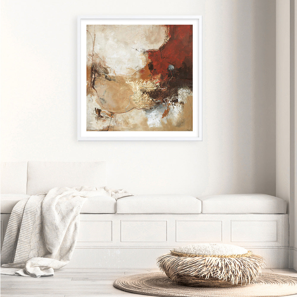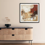 Shop Curvature (Square) Art Print by Design Fabrikken and update your wall decor at home easily with this clash of red and brown abstract square artwork from our hand painted print collection.