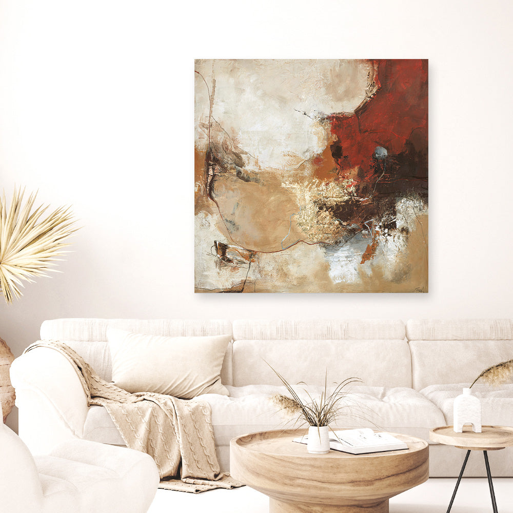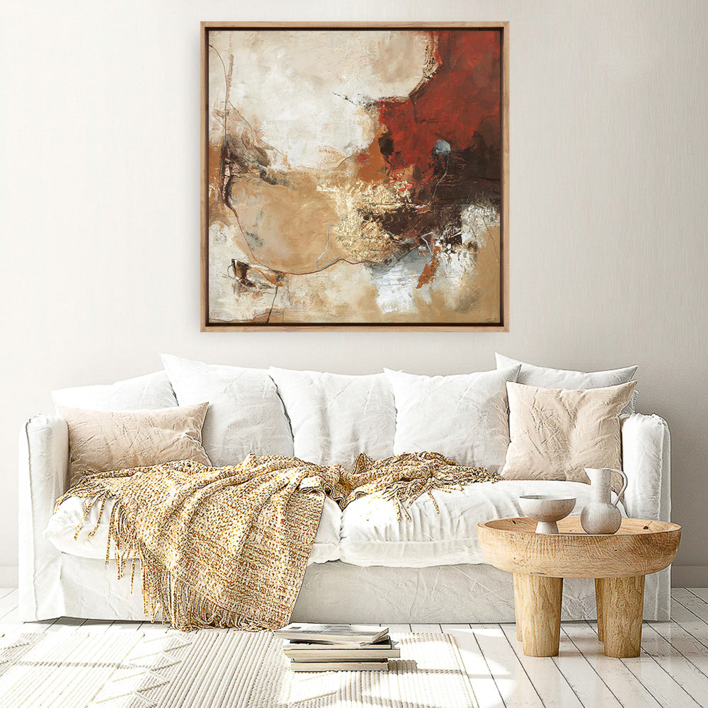 Shop Curvature (Square) Canvas Print by Design Fabrikken and update your wall decor at home easily with this clash of red and brown abstract square artwork from our hand painted canvas print collection.