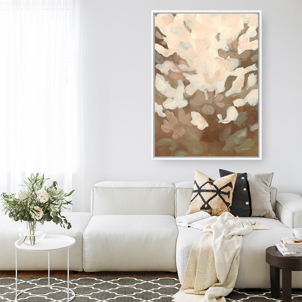 Shop Dapple IICanvas Print by Haley Knightenand update your wall decor at home easily with this beige floral brush stroke artwork from our abstract hand painted print collection.