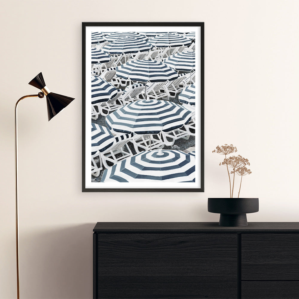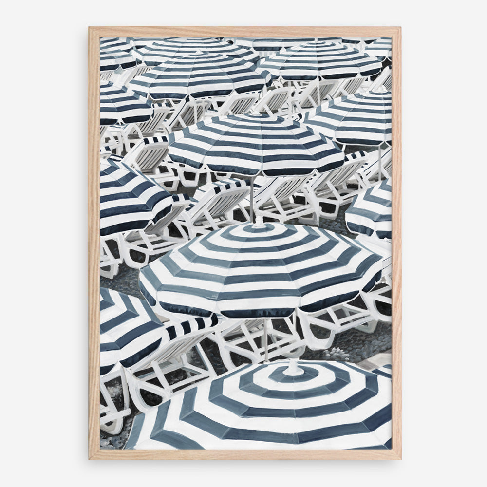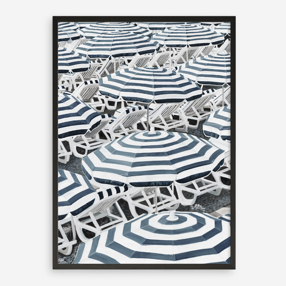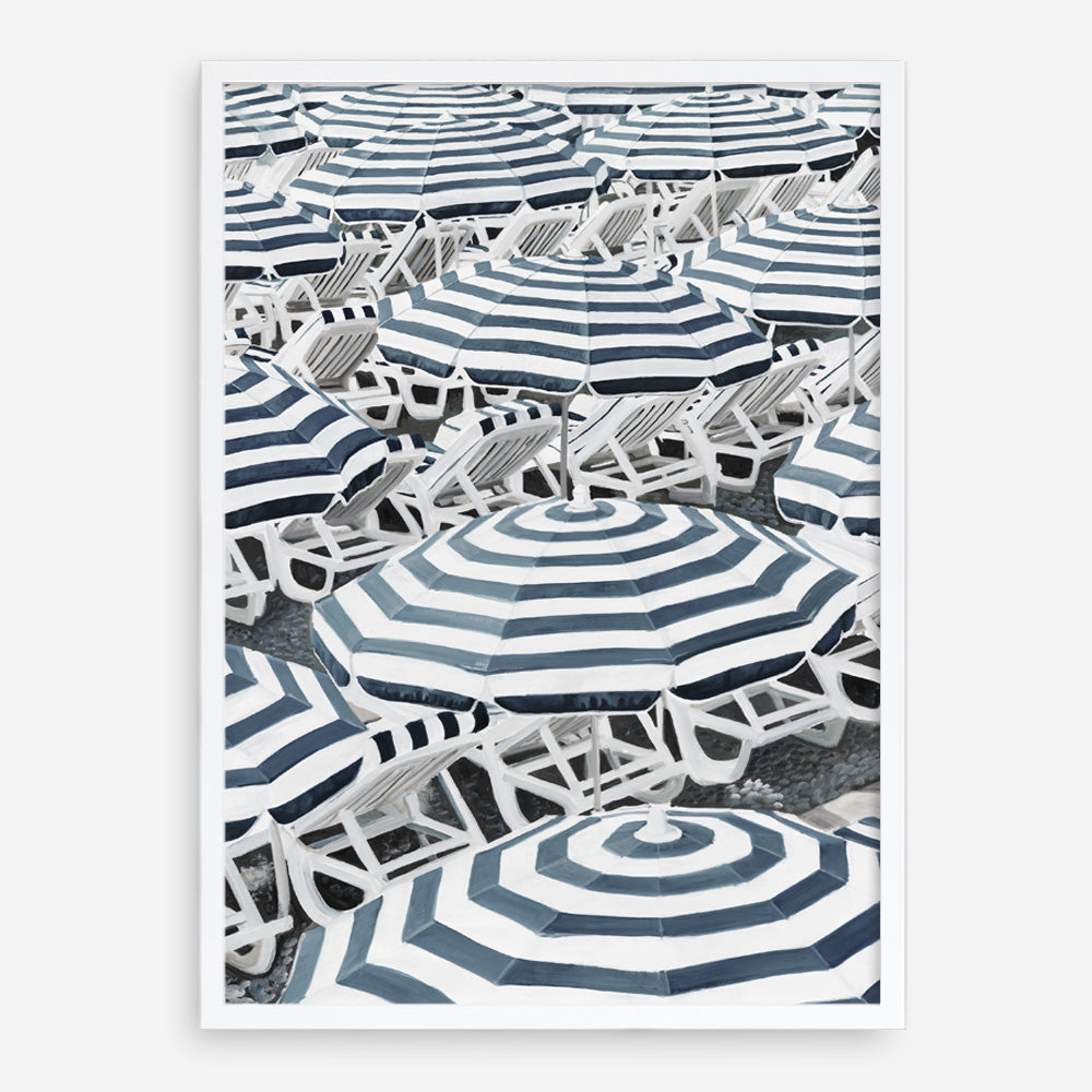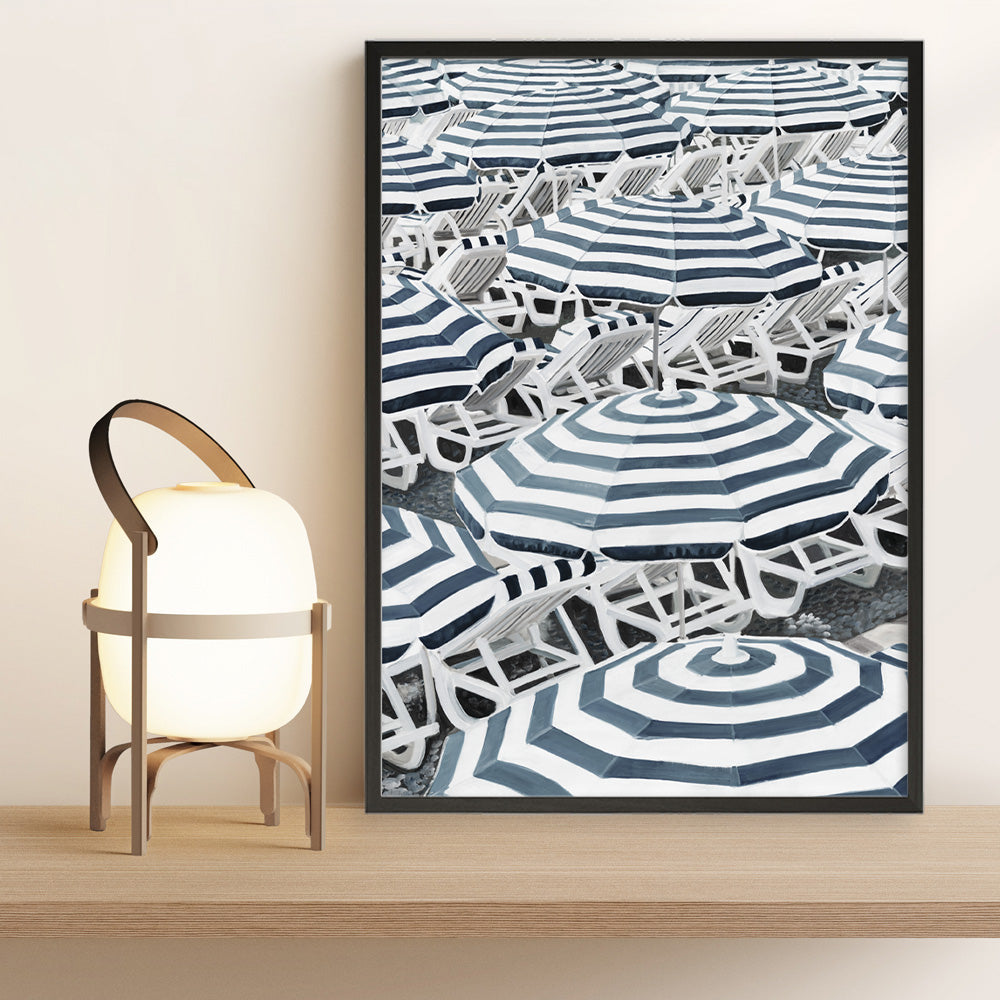 Shop Dark Blue Beach Umbrellas Art Print by The Print Emporium and update your wall decor at home easily with this artwork print from our hand painted print collection.