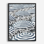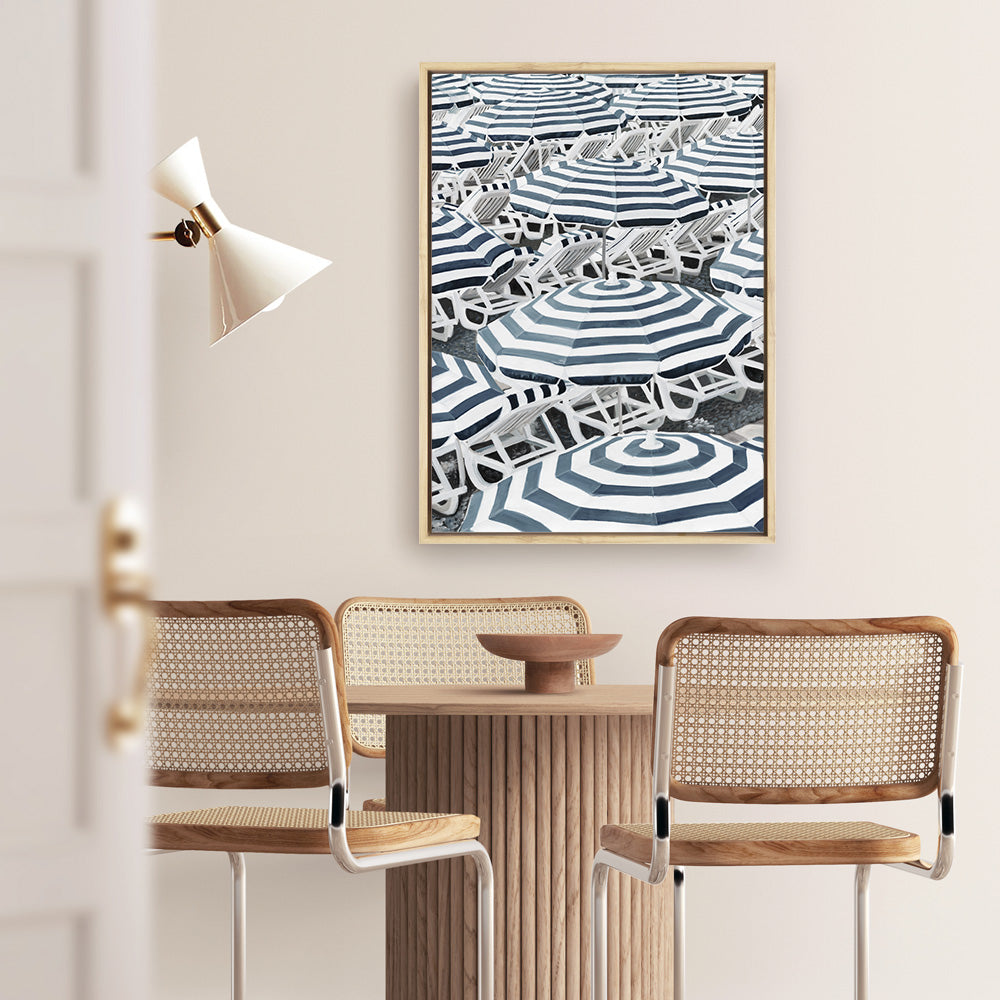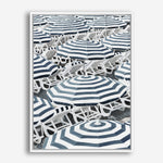 Shop Dark Blue Beach Umbrellas Canvas Print by The Print Emporium and update your wall decor at home easily with this artwork from our hand painted print collection.