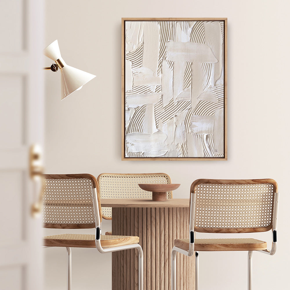 For an elevated finish, you can add a floating frame or a shadow box. These outer frames are available in white, black, and genuine raw oak.