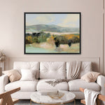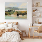 Shop Distant Mountain Canvas Print by Julia Purinton and update your wall decor at home easily with this beautiful view of a mountain and river from our abstract hand painted print collection.