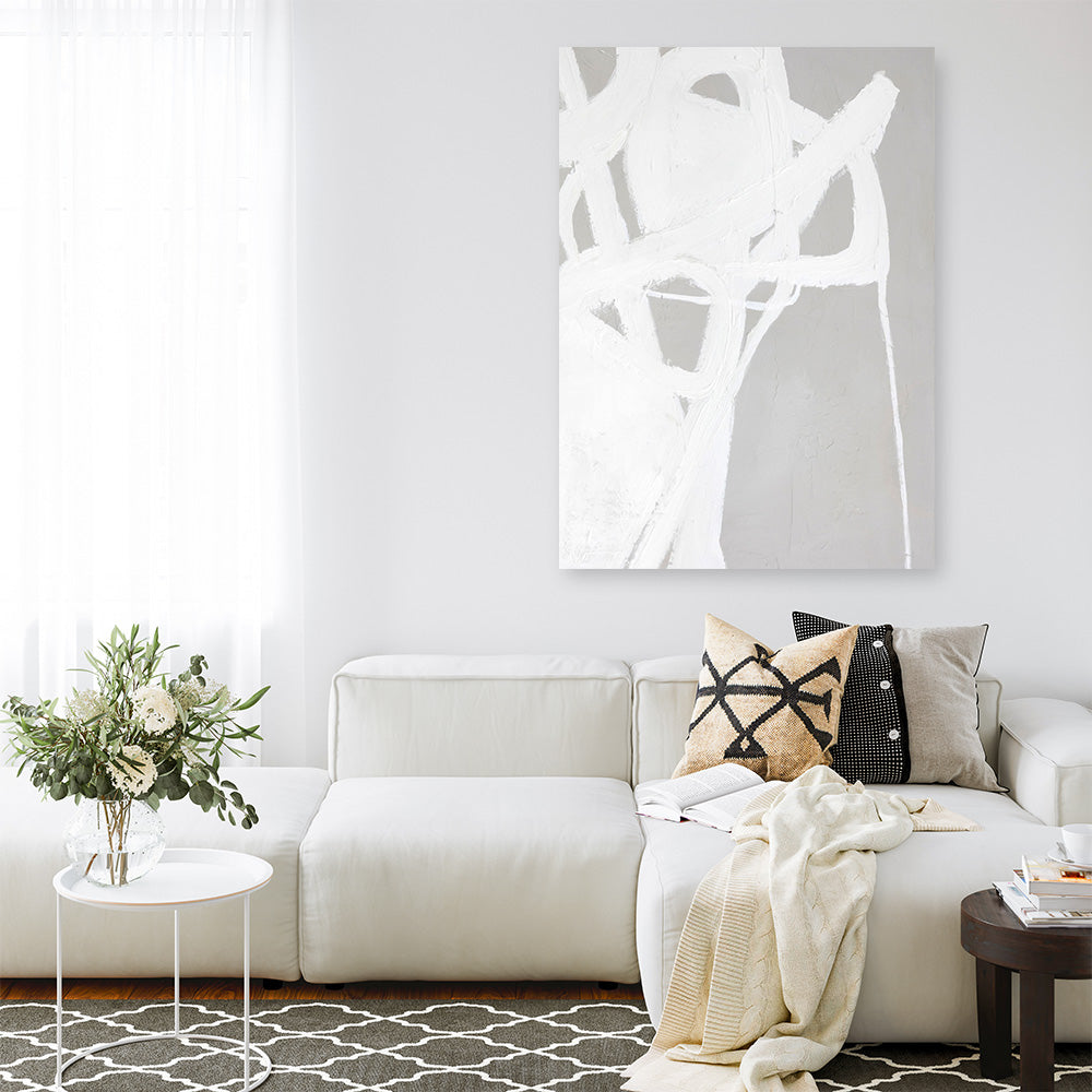 Shop Dive In Canvas Print by Design Fabrikken and update your wall decor at home easily with this abstract greyscale artwork from our hand painted canvas print collection.