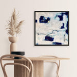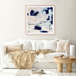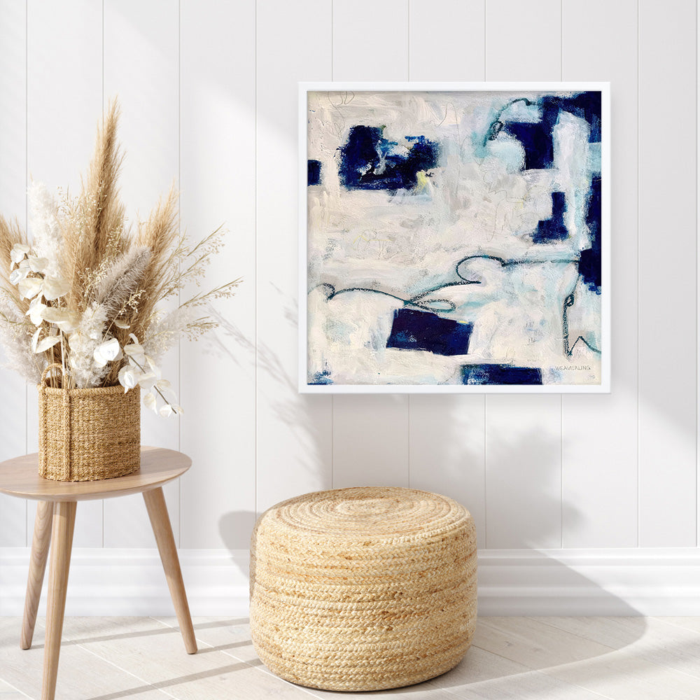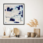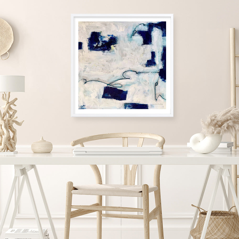Shop Drifting In Blue No. 1 (Square) Art Print by Julie Weaverling and update your wall decor at home easily with this blue and cream abstract square artwork from our hand painted print collection.