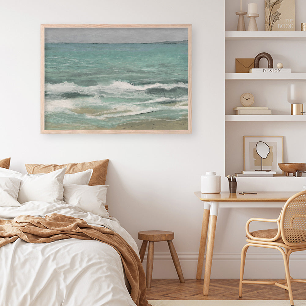 Shop East Bank Waves Art Print and update your wall decor at home easily with this coastal themed abstract artwork print from our hand painted print collection by United Kingdom based artist Dan Hobday, now available on The Print Emporium. Dan creates artwork using a mixture of mediums including acrylic paints, inks, digital and also mixed media. All original artworks were designed and hand created by Dan and then digitised, and now available to purchase as reprints on paper or canvas and with framing options available.