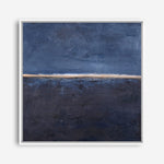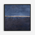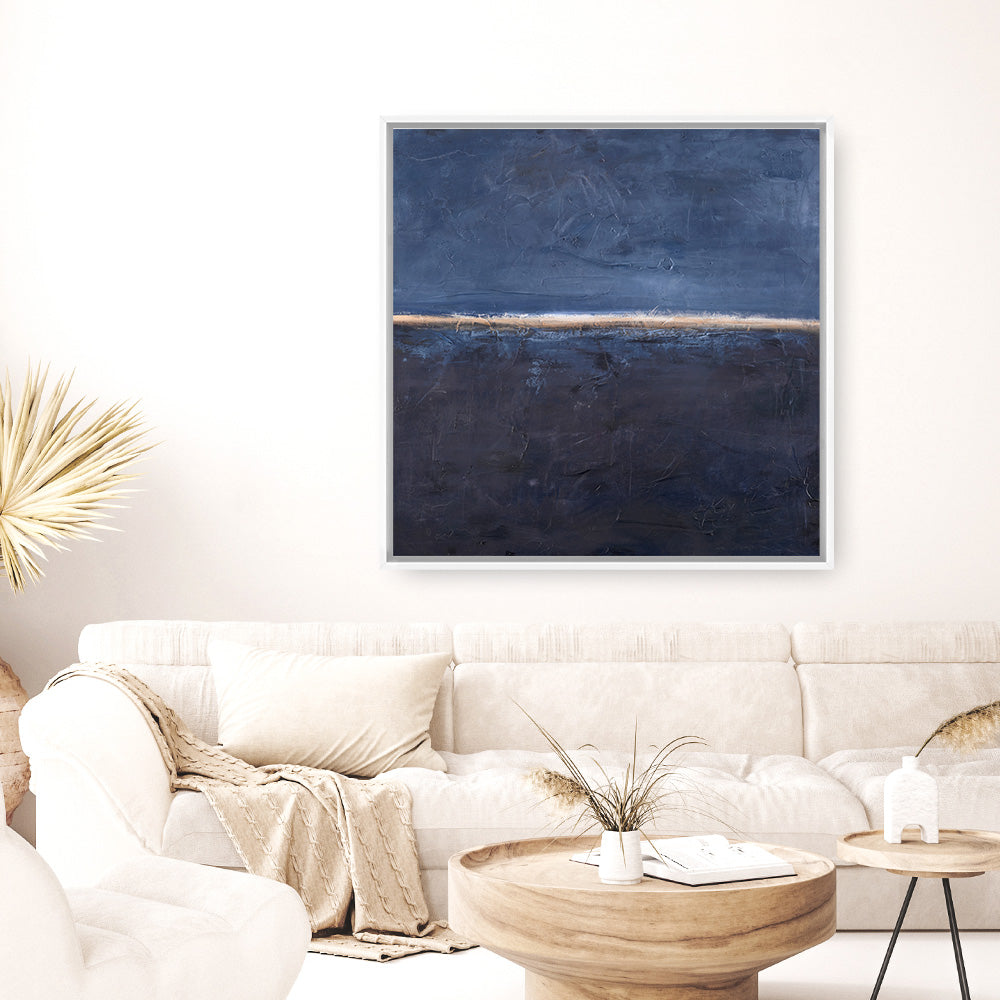 Shop Edge Blue (Square) Canvas Print by Design Fabrikken and update your wall decor at home easily with this navy blue horizon square artwork from our hand painted canvas print collection.
