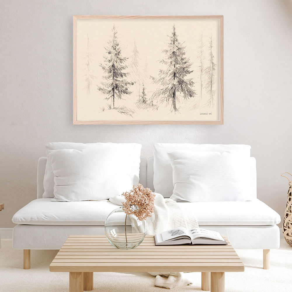 Shop Elegant Pine III PanelArt Print by Danhui Naiand update your wall decor at home easily with this beautiful sketch of pine trees from our abstract hand painted print collection.
