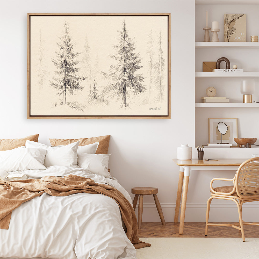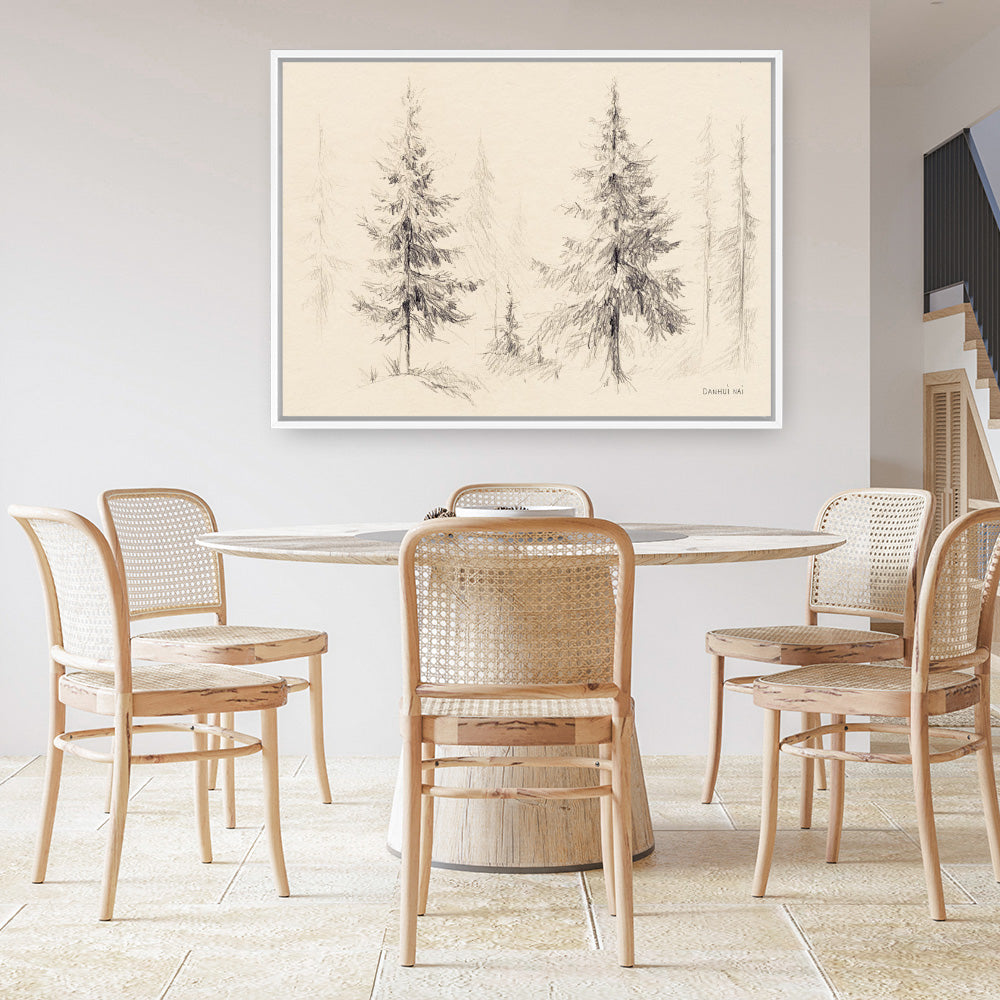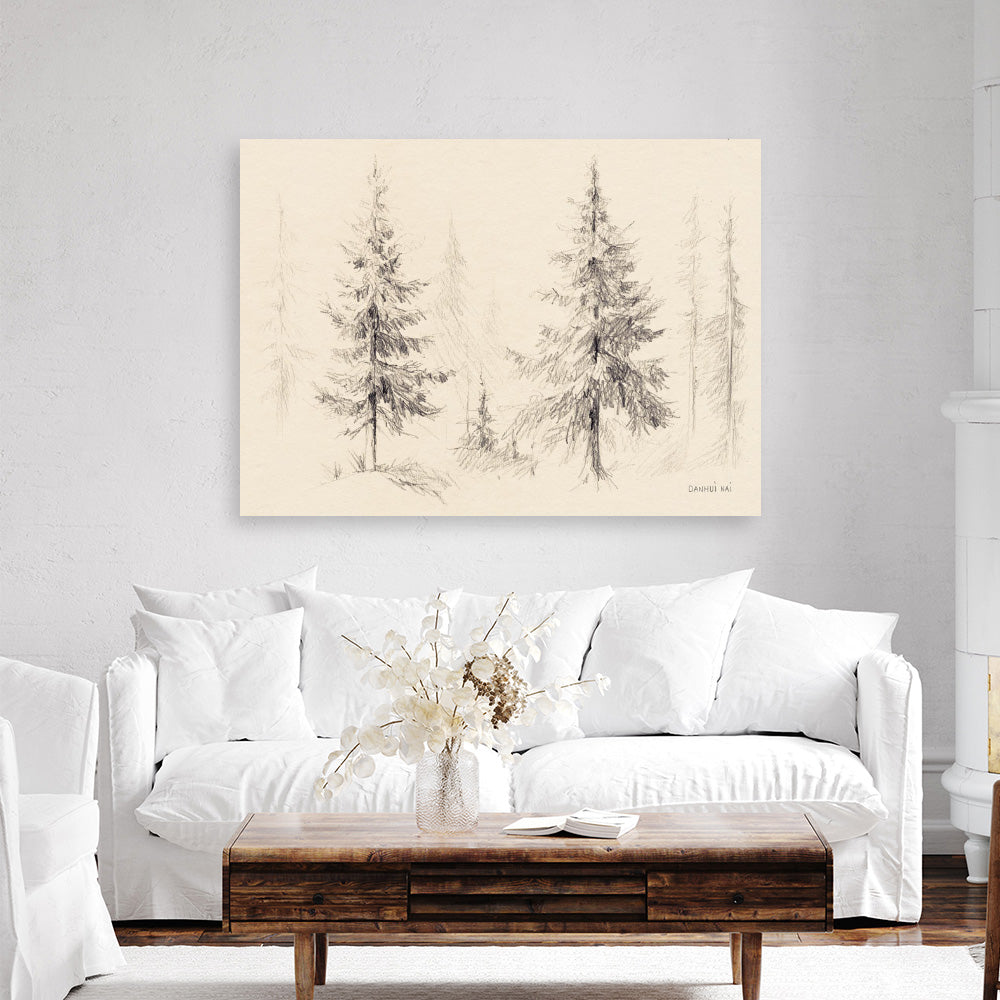 Shop Elegant Pine III Panel Canvas Print by Danhui Naiand update your wall decor at home easily with this beautiful sketch of pine trees from our abstract hand painted print collection.