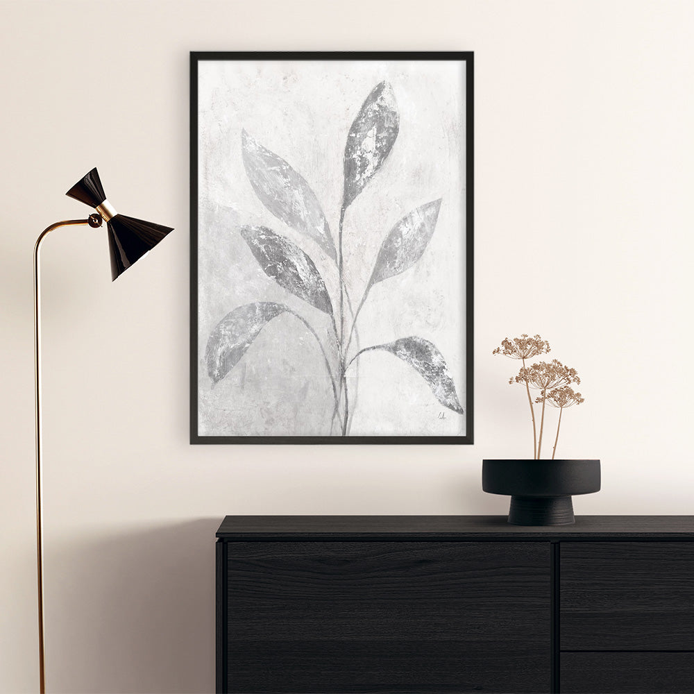 Shop Ethereal Leaves I Art Print by Sarah Adamsand update your wall decor at home easily with this grey toned botanical artwork from our abstract hand painted print collection.