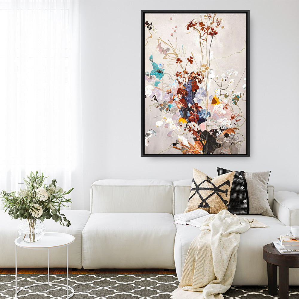 Shop Fall Floral Canvas Print by Design Fabrikken and update your wall decor at home easily with this beautiful bouquet of flowers artwork from our hand painted canvas print collection.