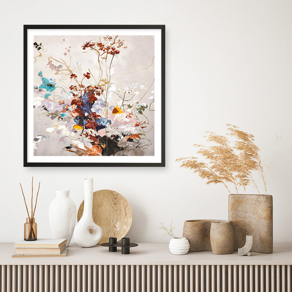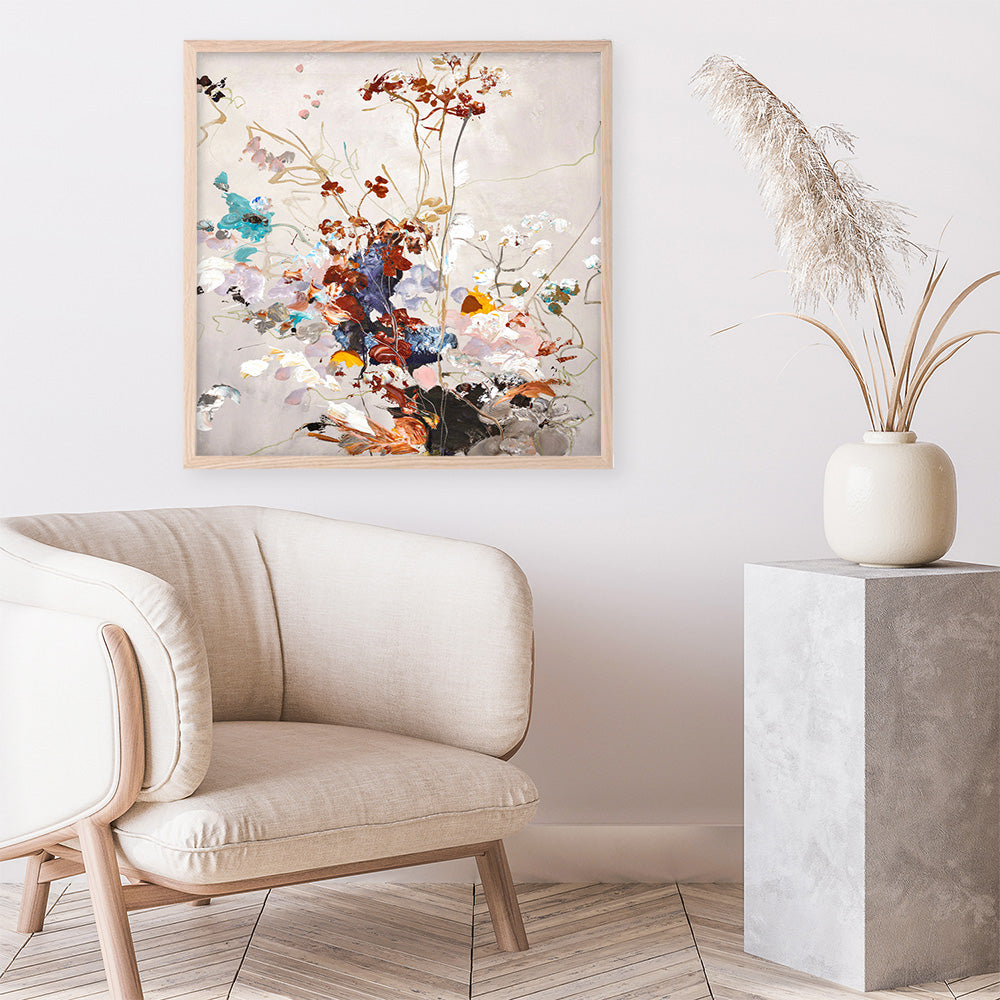Shop Fall Floral (Square) Art Print by Design Fabrikken and update your wall decor at home easily with this beautiful bouquet of flowers square artwork from our hand painted print collection.