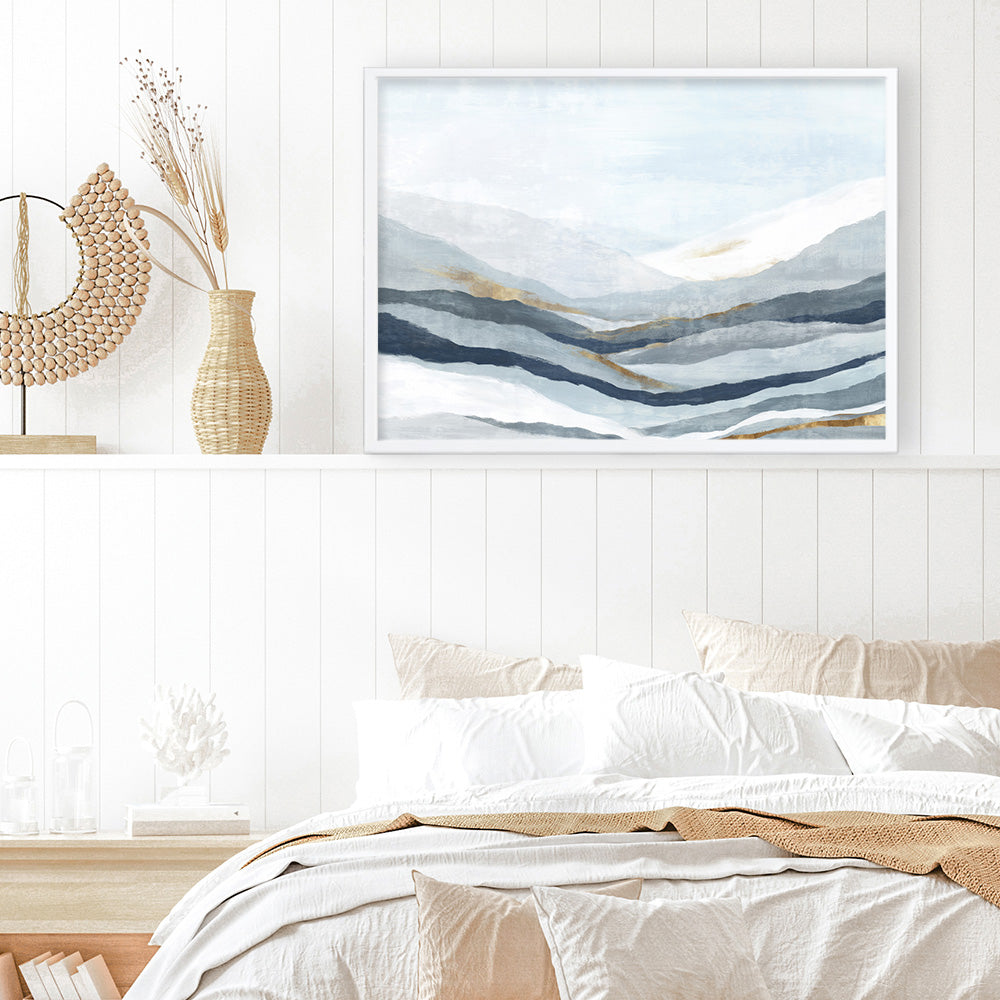 Shop Far Away Land II Wall Art Print by Eva Watts and update your wall decor at home easily with this blue toned landscape themed artwork from our hand-painted wall art prints collection. Available framed or as a fine art unframed print.
