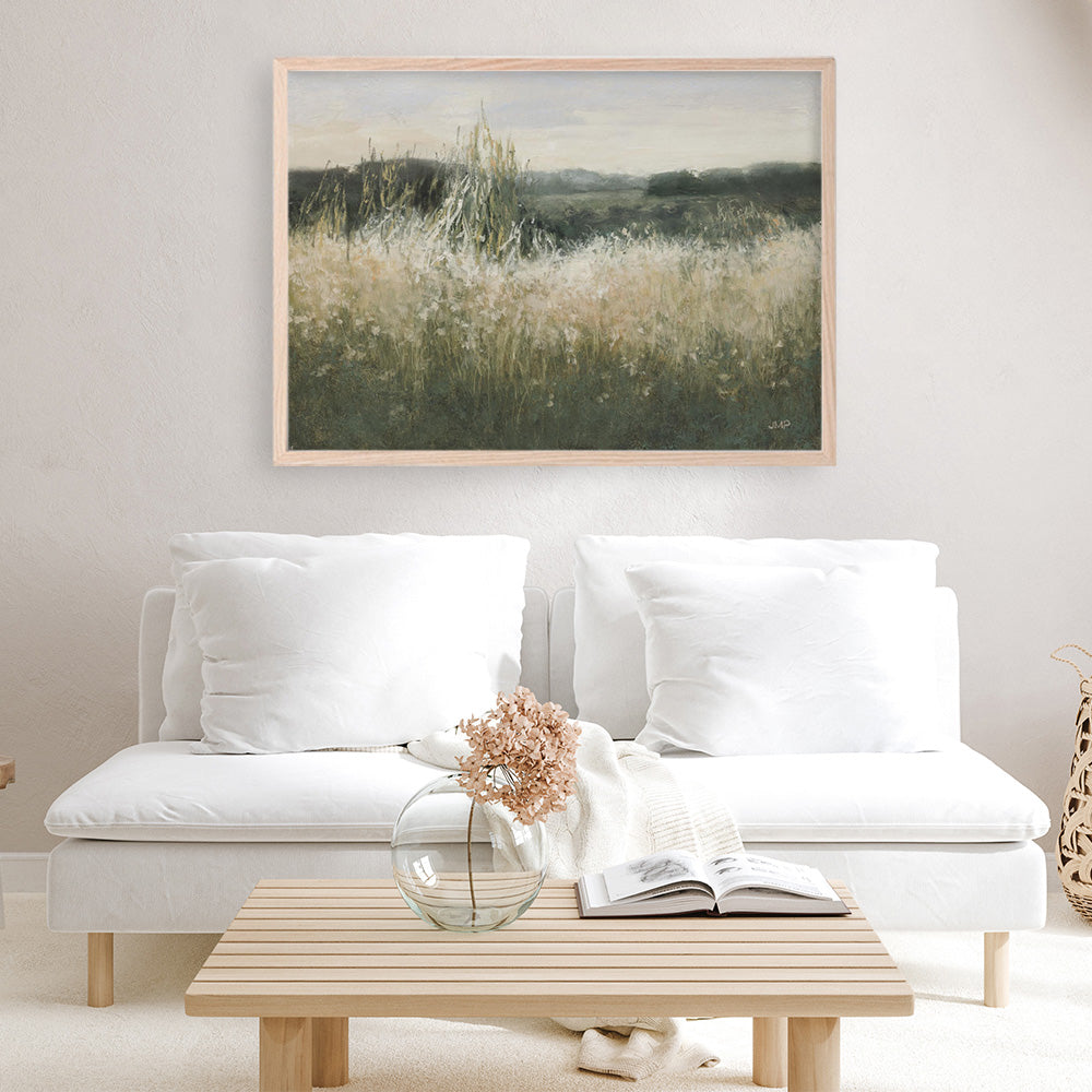 Shop Field View Neutral Art Print by Julia Purinton and update your wall decor at home easily with this grassy land country themed artwork from our abstract hand painted print collection.