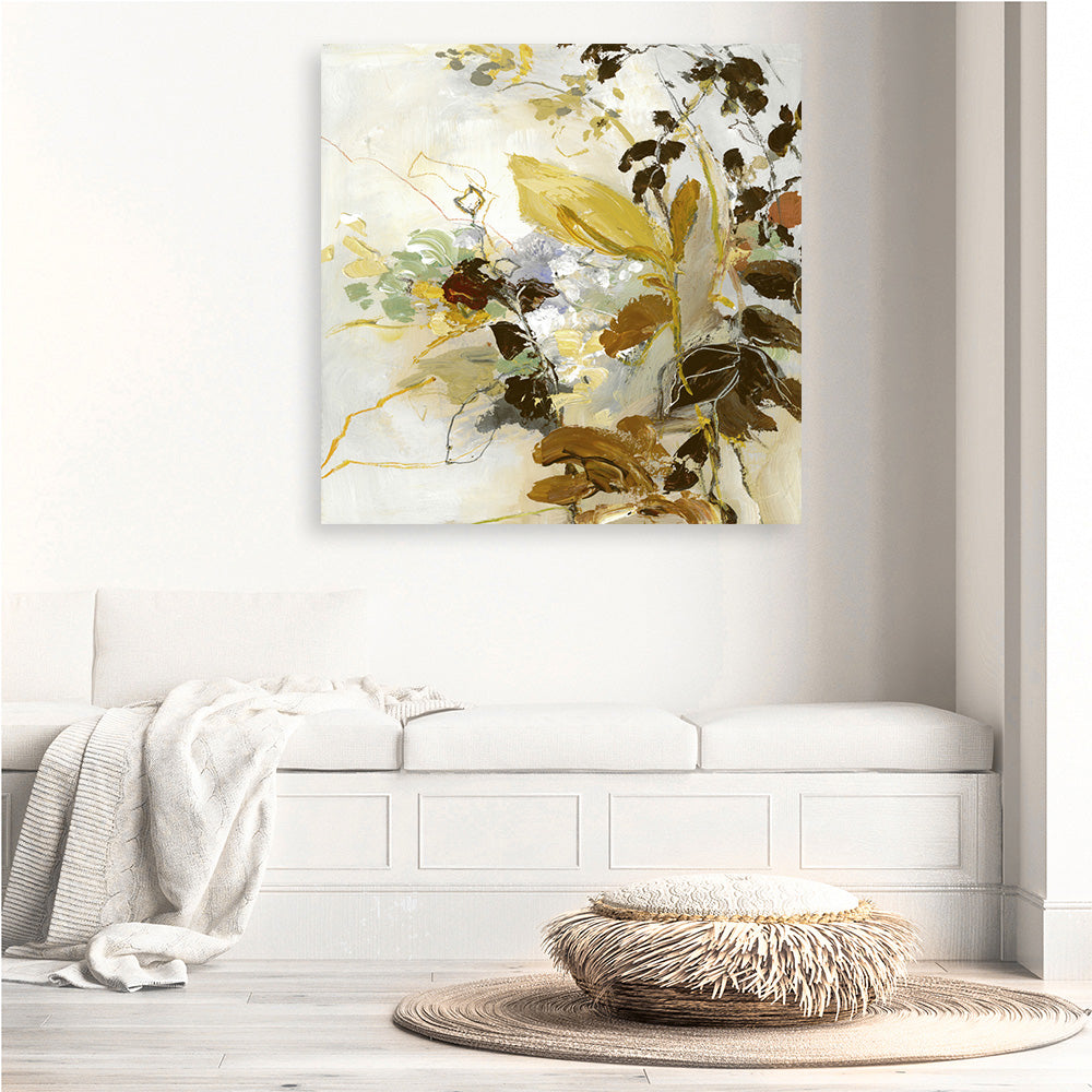 Shop Flock of Flowers 1 (Square) Canvas Print by Design Fabrikken and update your wall decor at home easily with this golden floral bouquet square artwork from our hand painted canvas print collection.
