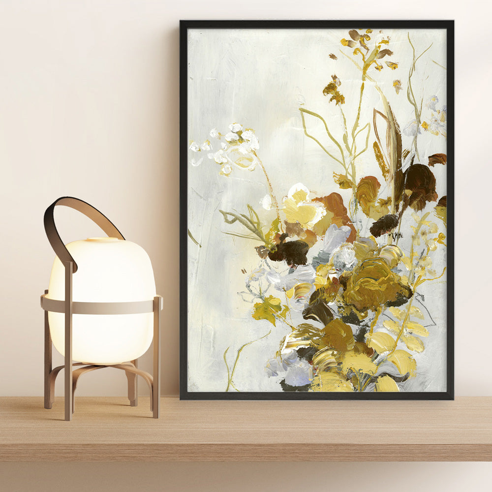 Shop Flock of Flowers 2 Art Print by Design Fabrikken and update your wall decor at home easily with this golden floral bouquet artwork from our hand painted print collection.