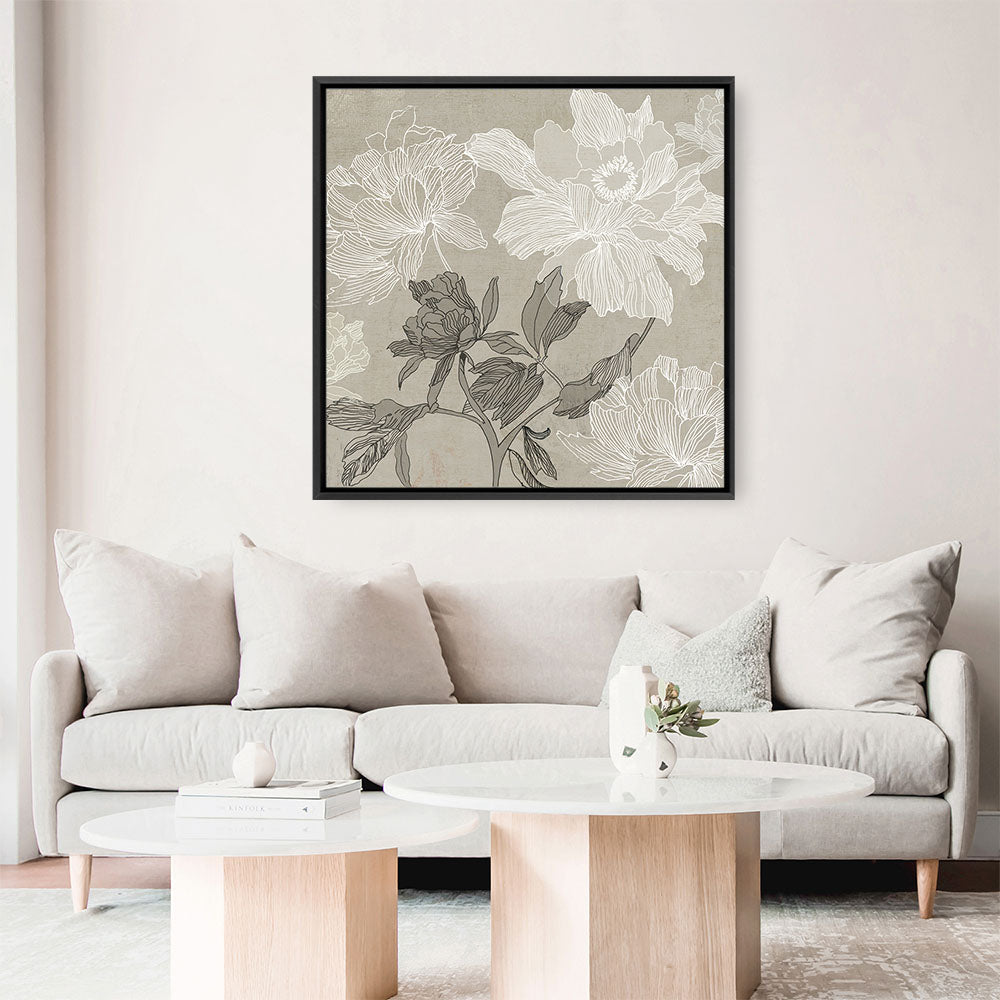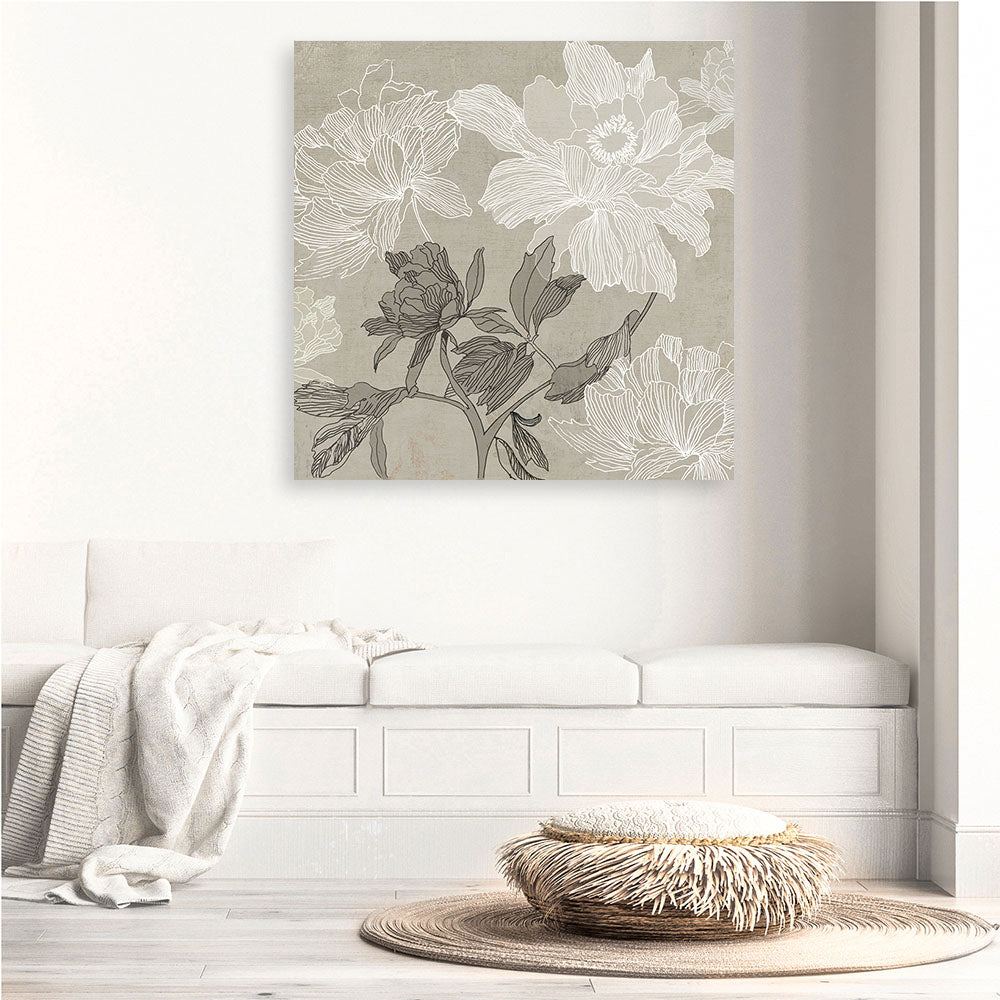 Shop Floral Lines I (Square) Canvas Wall Art Print by Asia Jensen and update your wall decor at home easily with this white and grey floral themed framed canvas artwork piece from our hand painted prints collection.
