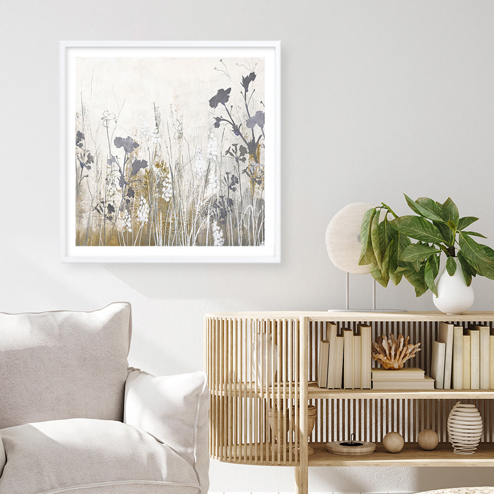 Shop Flowers Forever 1 (Square) Art Print by Design Fabrikken and update your wall decor at home easily with this field of grey flowers square artwork from our hand painted print collection.