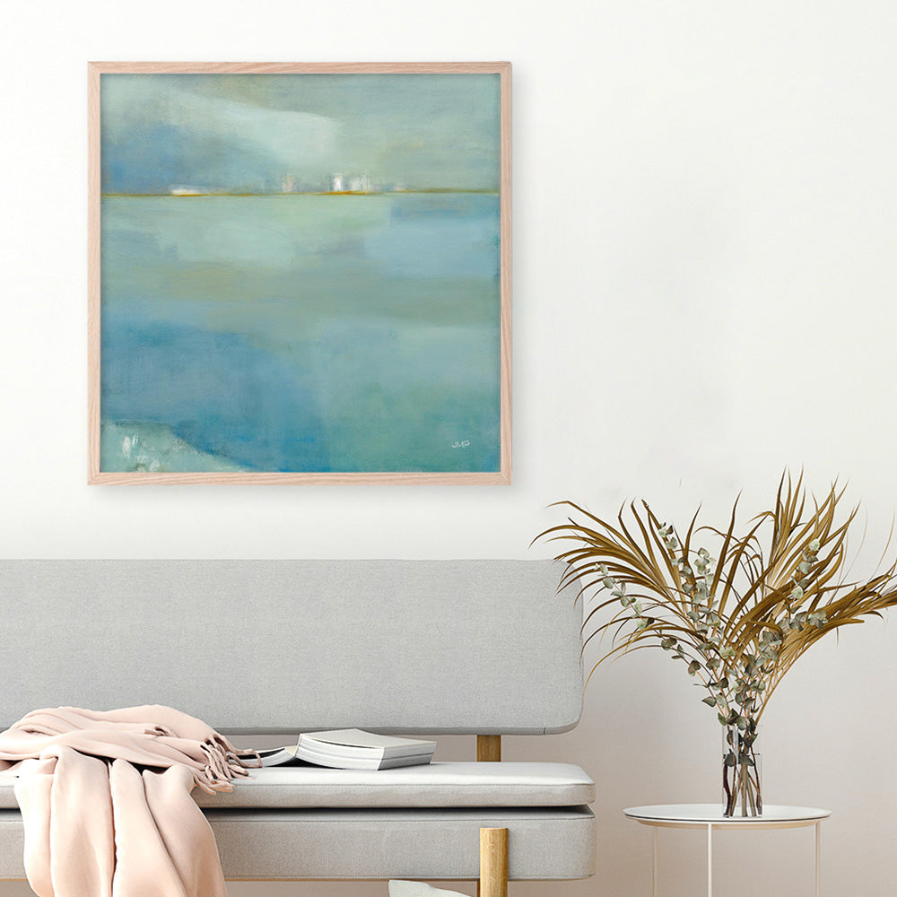 Shop Fog and Dew (Square) Art Print by Julia Purinton and update your wall decor at home easily with this aqua blue-toned abstract landscape themed artwork from our hand painted print collection.
