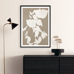 Shop Fortuna White Art Print by Design Fabrikken and update your wall decor at home easily with this white and brown botanical silhouette artwork from our hand painted print collection.