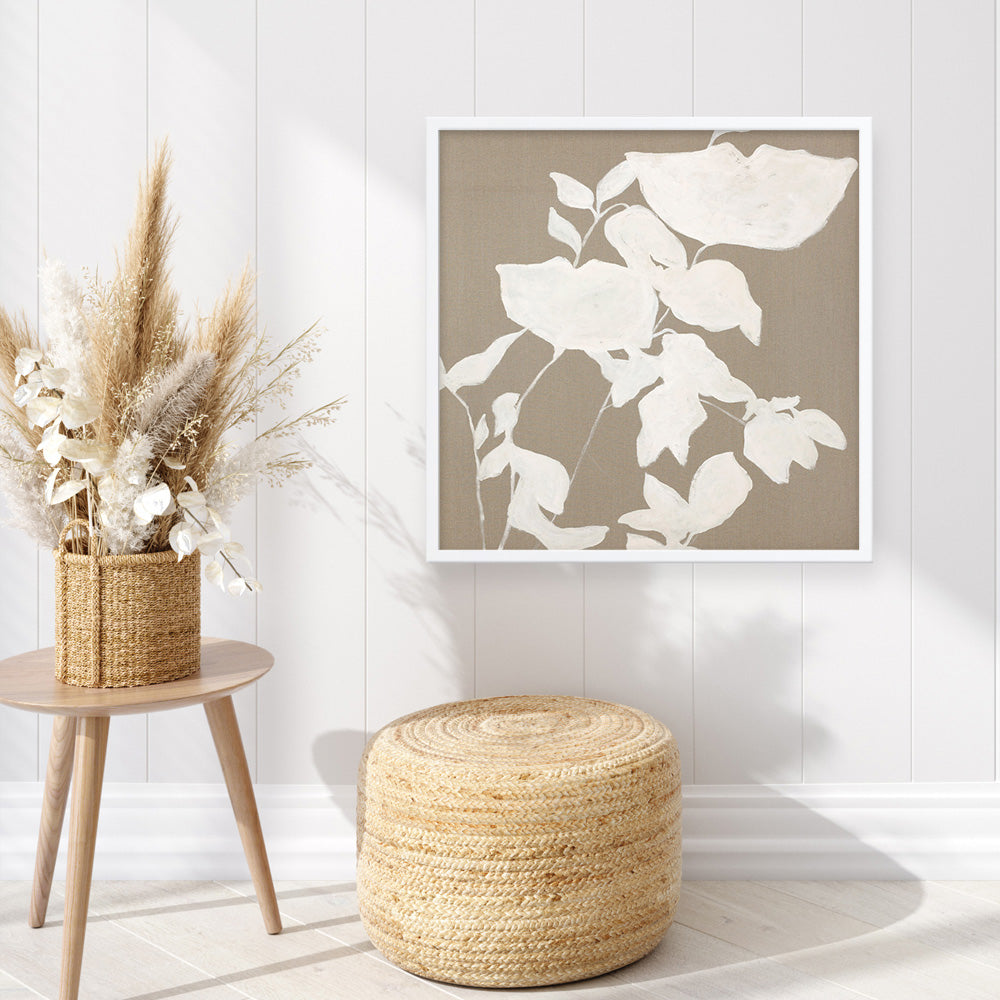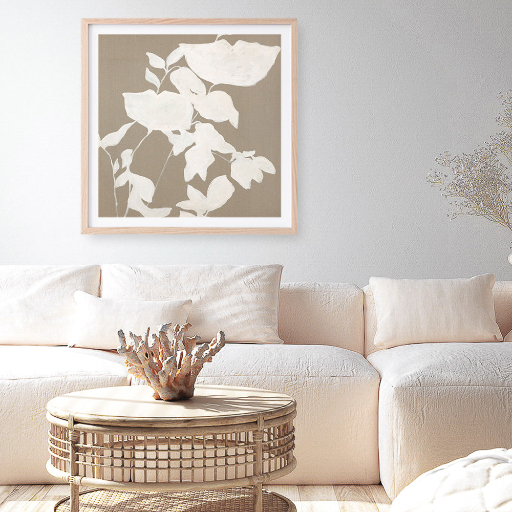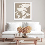 Shop Fortuna White (Square) Art Print by Design Fabrikken and update your wall decor at home easily with this white and brown botanical silhouette square artwork from our hand painted print collection.
