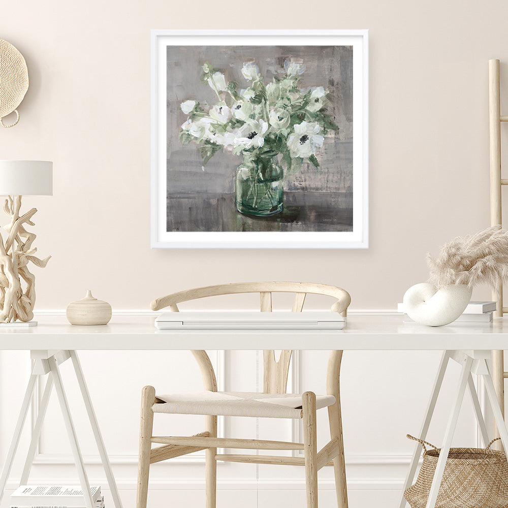 Shop Fresh Anemones Sage (Square) Art Print by Danhui Nai and update your wall decor at home easily with this vase of anemones artwork print from our hand painted prints collection.