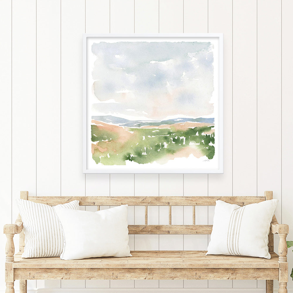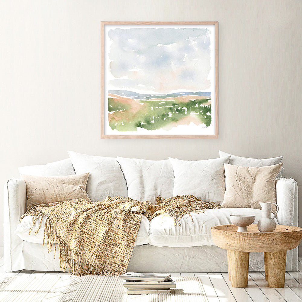 Shop Gentle Landscape I (Square) Art Print by Katrina Pete and update your wall decor at home easily with this moody watercolor landscape abstract print from our hand painted prints collection.