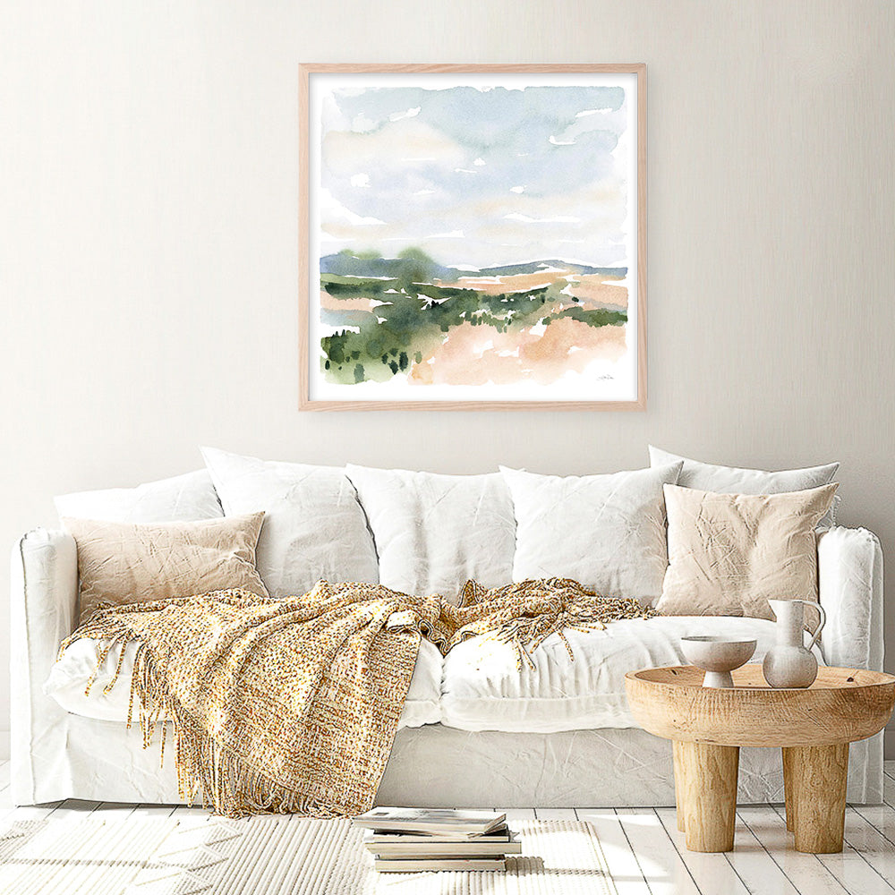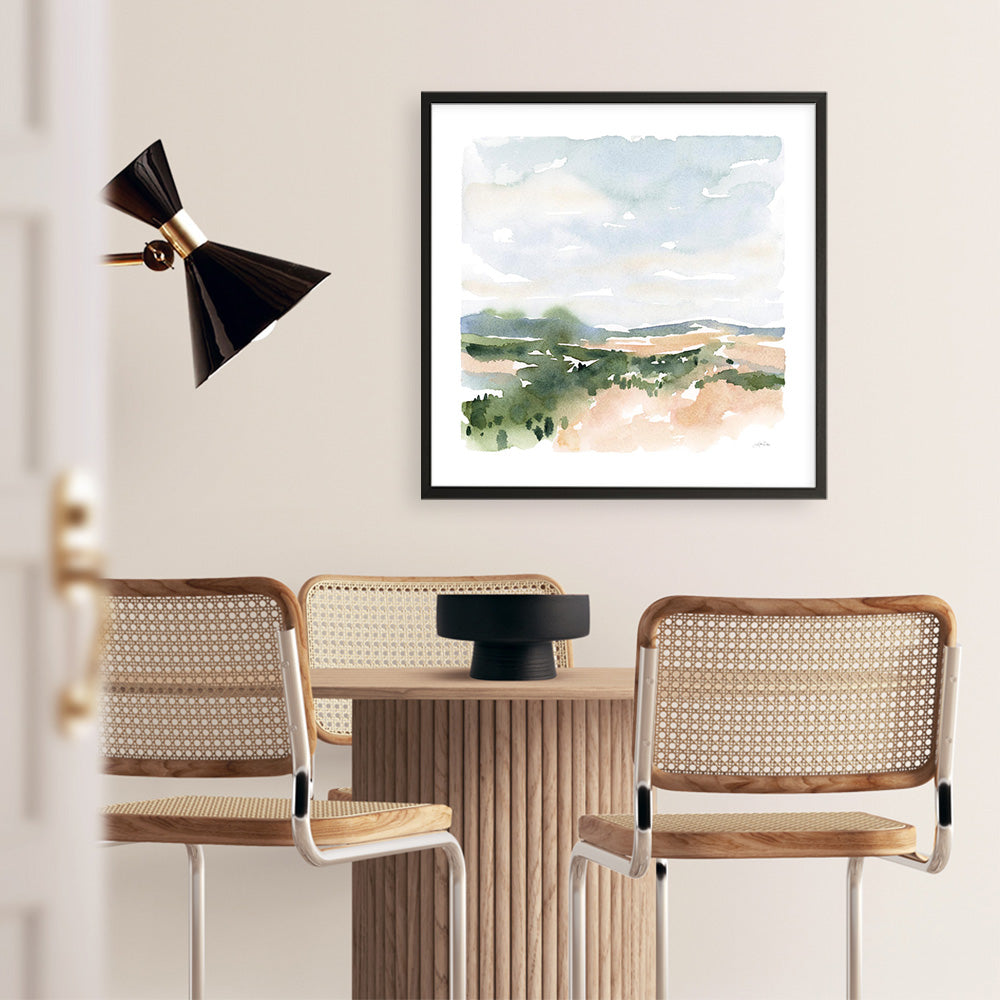 Shop Gentle Landscape II (Square) Art Print by Katrina Pete and update your wall decor at home easily with this moody watercolor landscape abstract print from our hand painted prints collection.