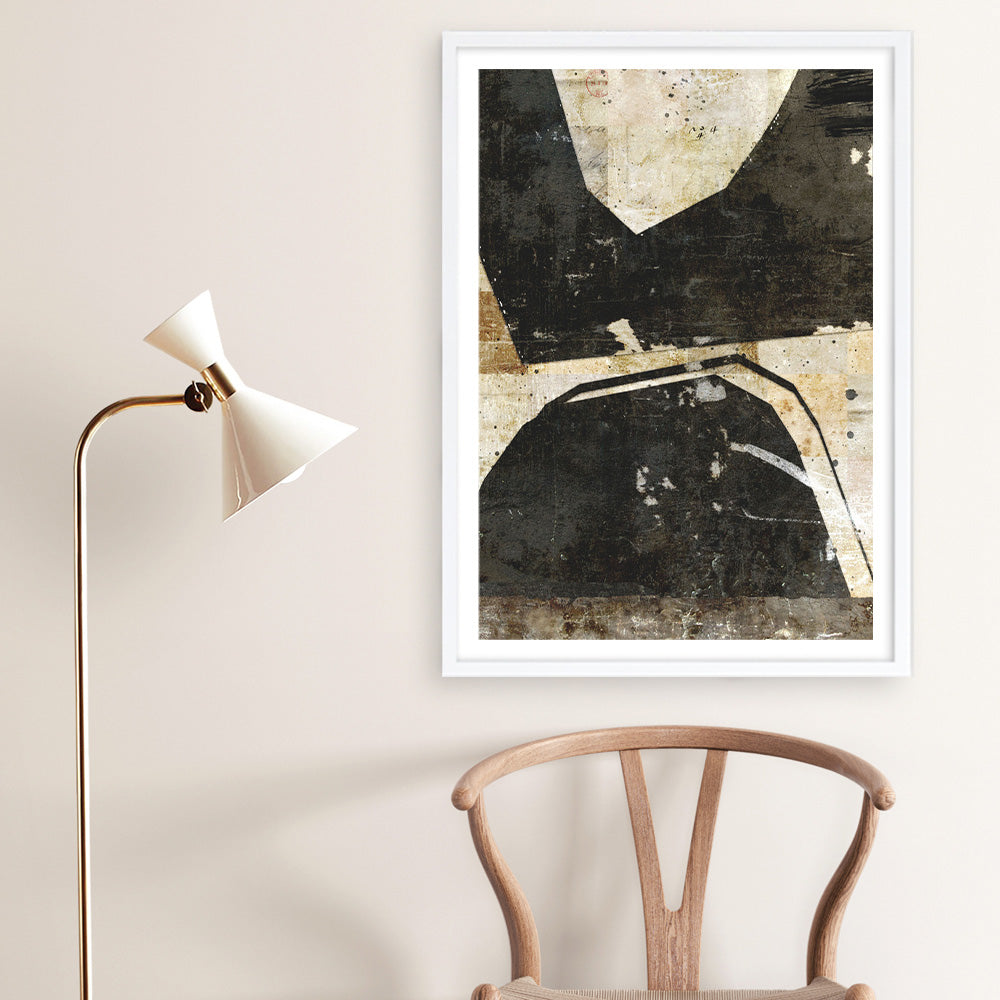 Shop Geometric Collage I Art Print by Suzanne Nicoll and update your wall decor at home easily with this neutral geometric abstract print from our hand painted print collection.