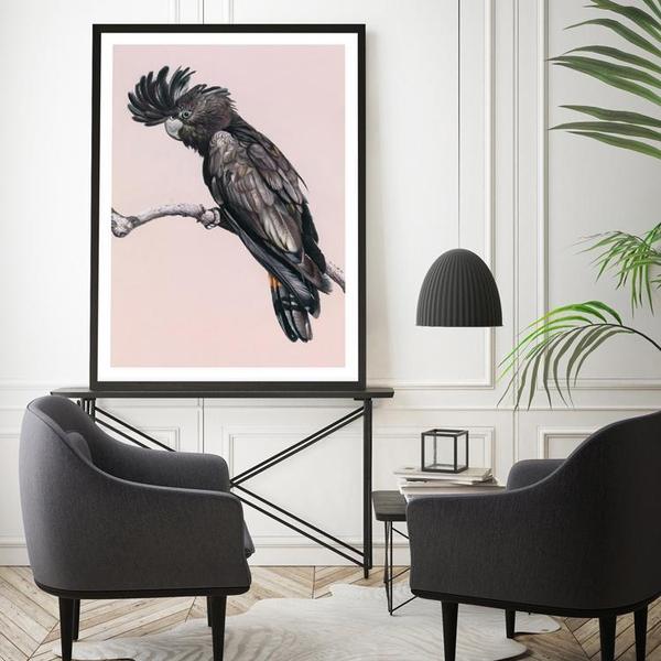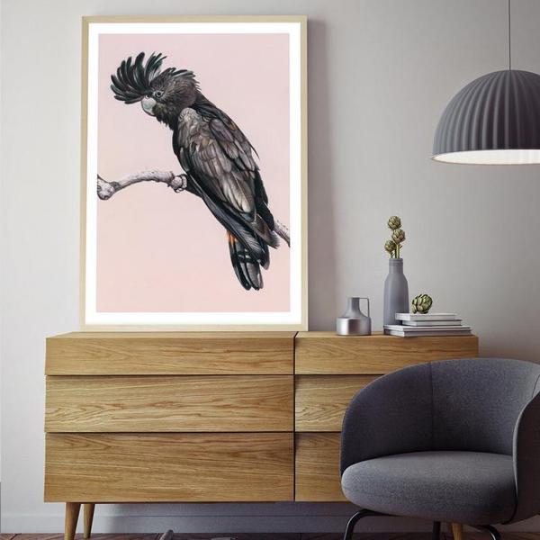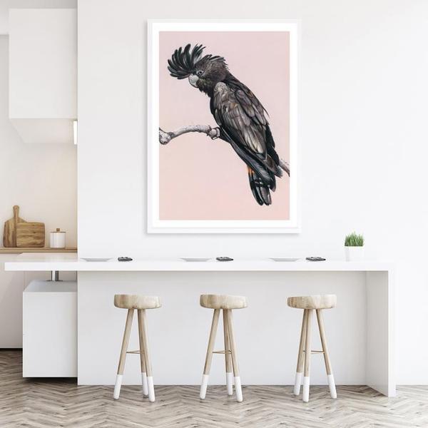 Shop George The Black Cockatoo (Pink) Art Print by The Print Emporium and update your wall decor at home easily with this artwork print from our hand painted print collection.