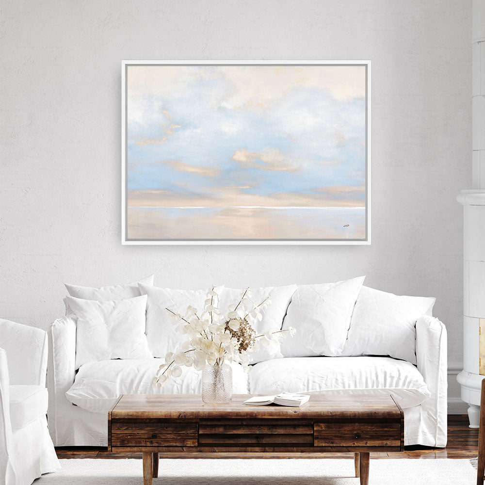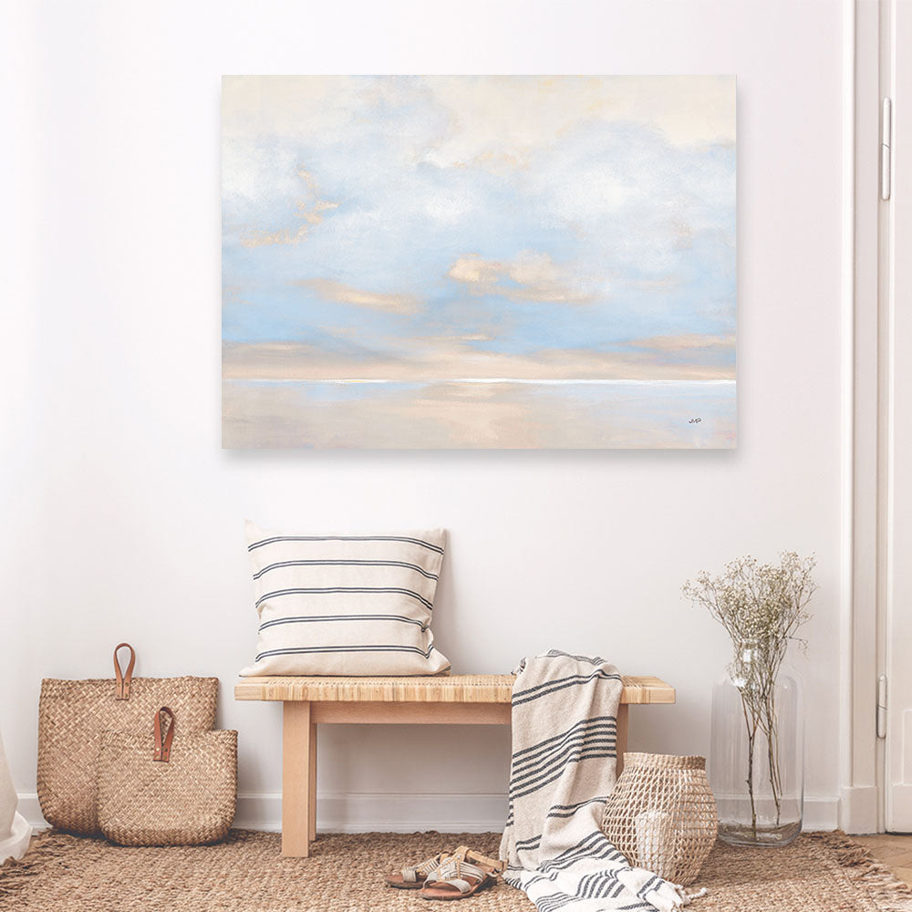 Shop Glint on the Horizon Blue Canvas Wall Art Print by Julia Purinton and update your wall decor at home easily with this pastel color abstract themed framed canvas artwork piece from our hand painted prints collection.