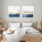 Shop Golden Horizon II (Square) Wall Art Print and update your wall decor at home easily with this blue and gold abstract themed wall artwork print from our hand painted prints collection.