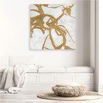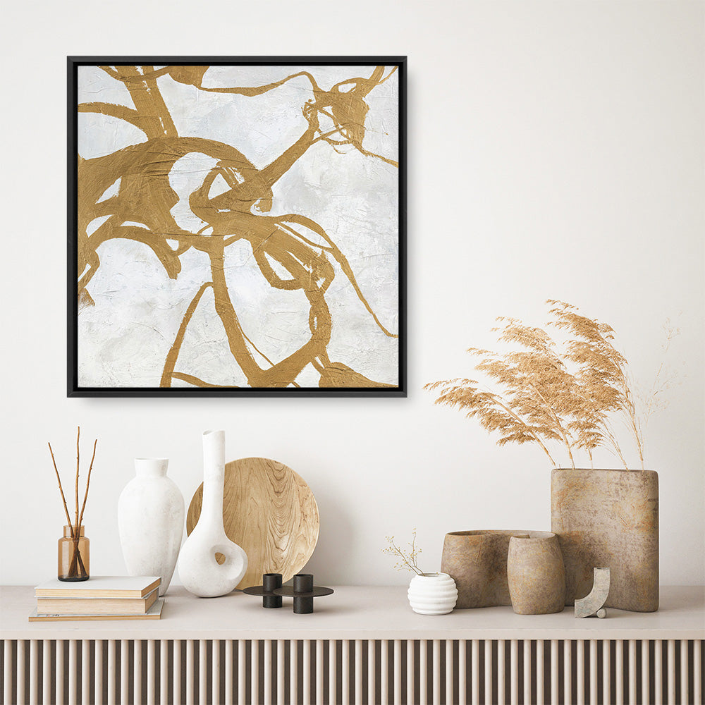 Shop Goldplay (Square) Canvas Print by Design Fabrikken and update your wall decor at home easily with this elegant abstract gold square artwork from our hand painted canvas print collection.