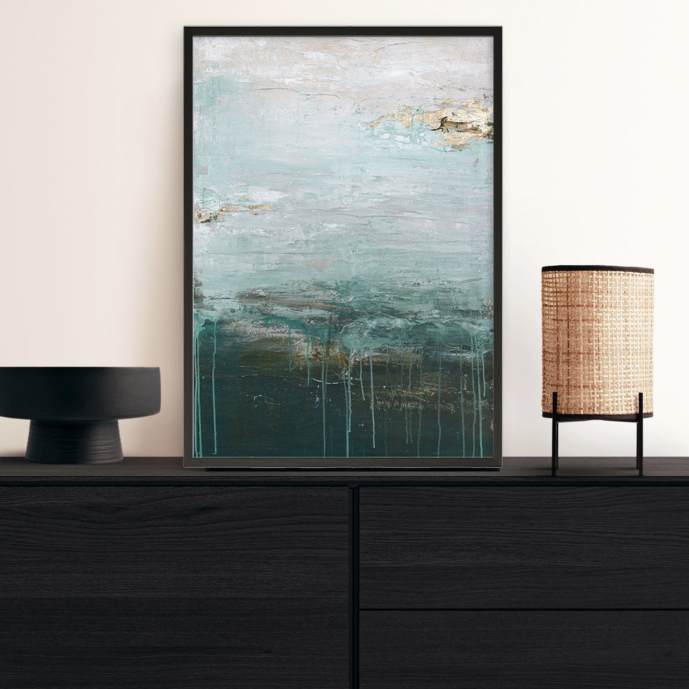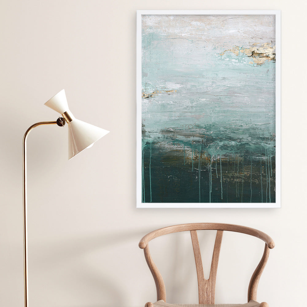 Shop Gradient Grace Art Print by Design Fabrikken and update your wall decor at home easily with this beautiful teal abstract print from our hand painted print collection.